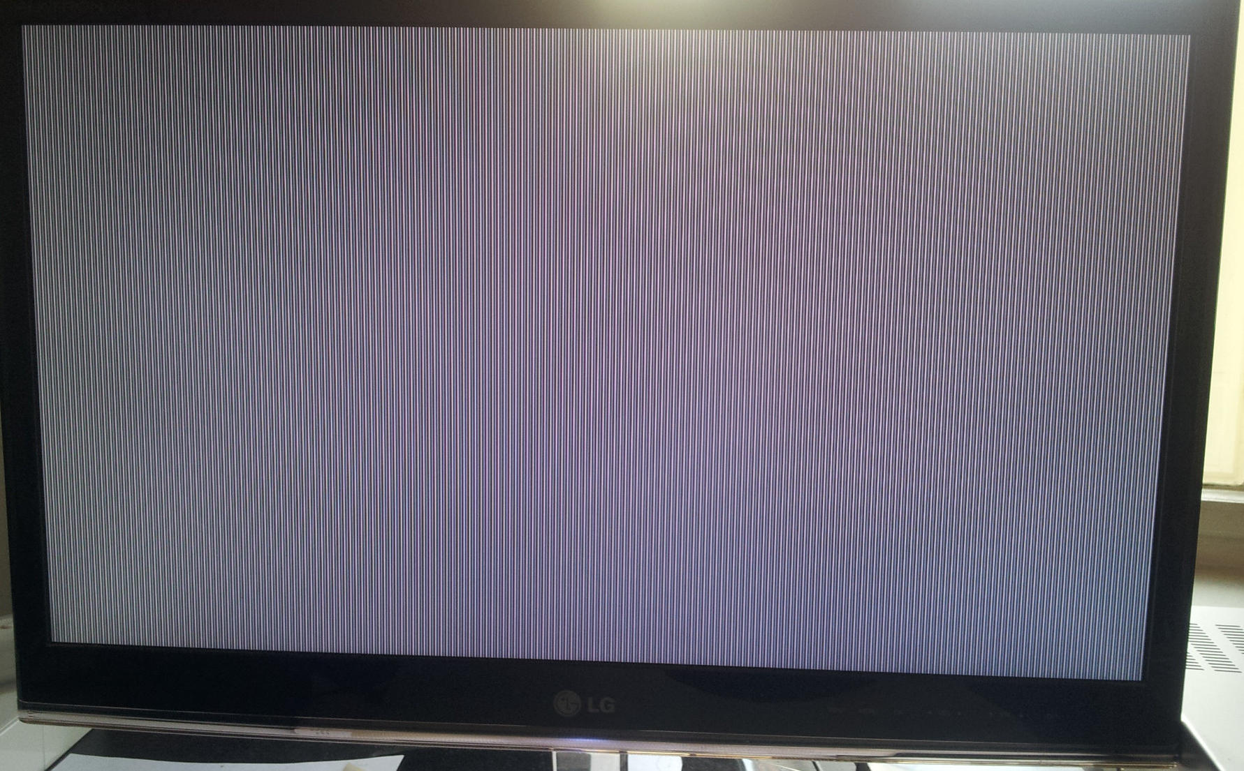 Und für einen Tag ging alles problemlos, aber heute hatte ich wieder einen Absturz. Diesmal war der Bildschirm voll mit vertikalen Streifen (siehe Bild).