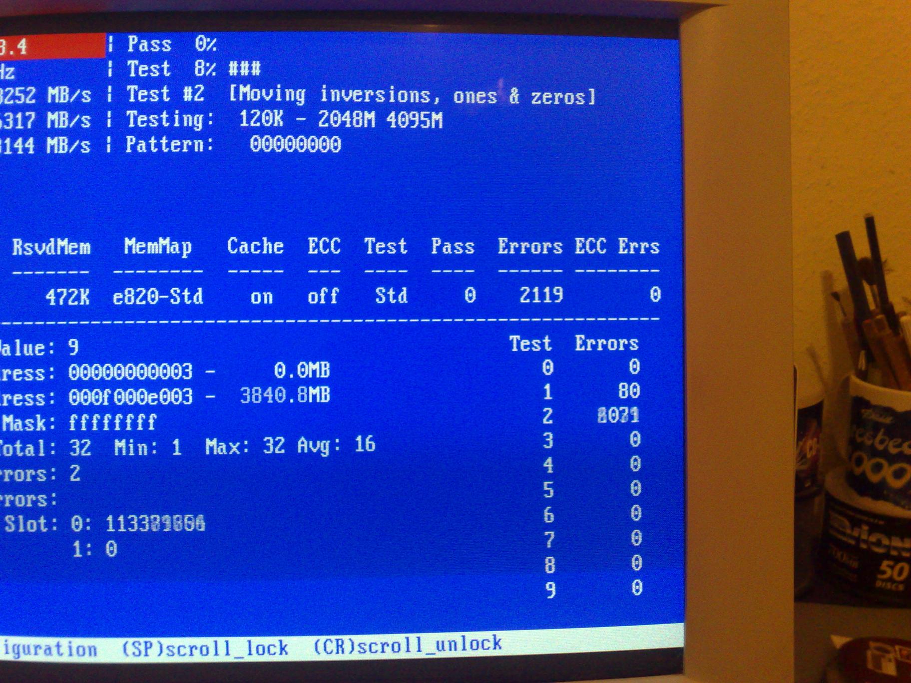 memtest habe ich glaube ich nicht komplett getestet, weil das was ich bis dahin verstehe, zeigt mir schon das da ne ganze menge errors drin sind