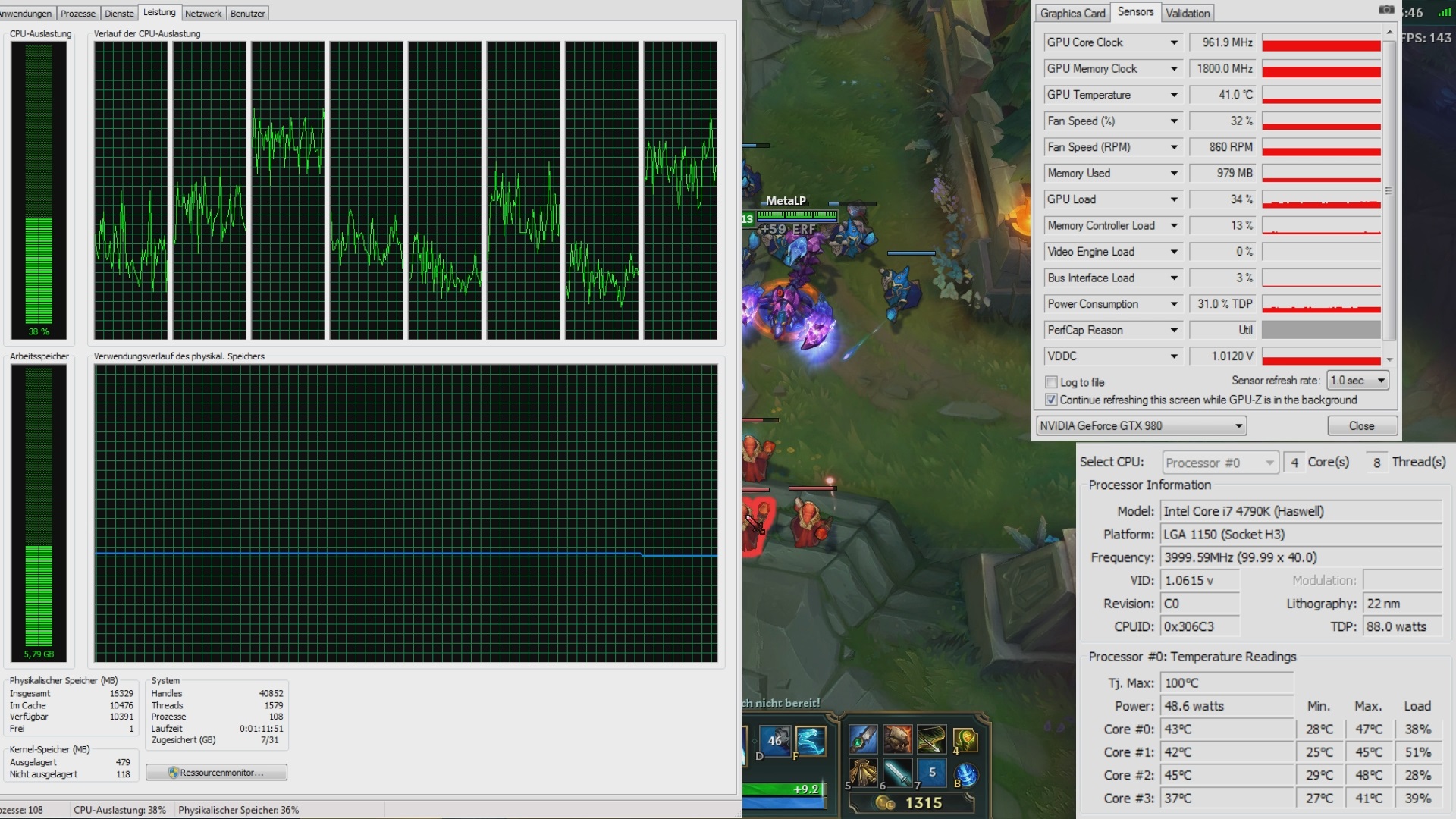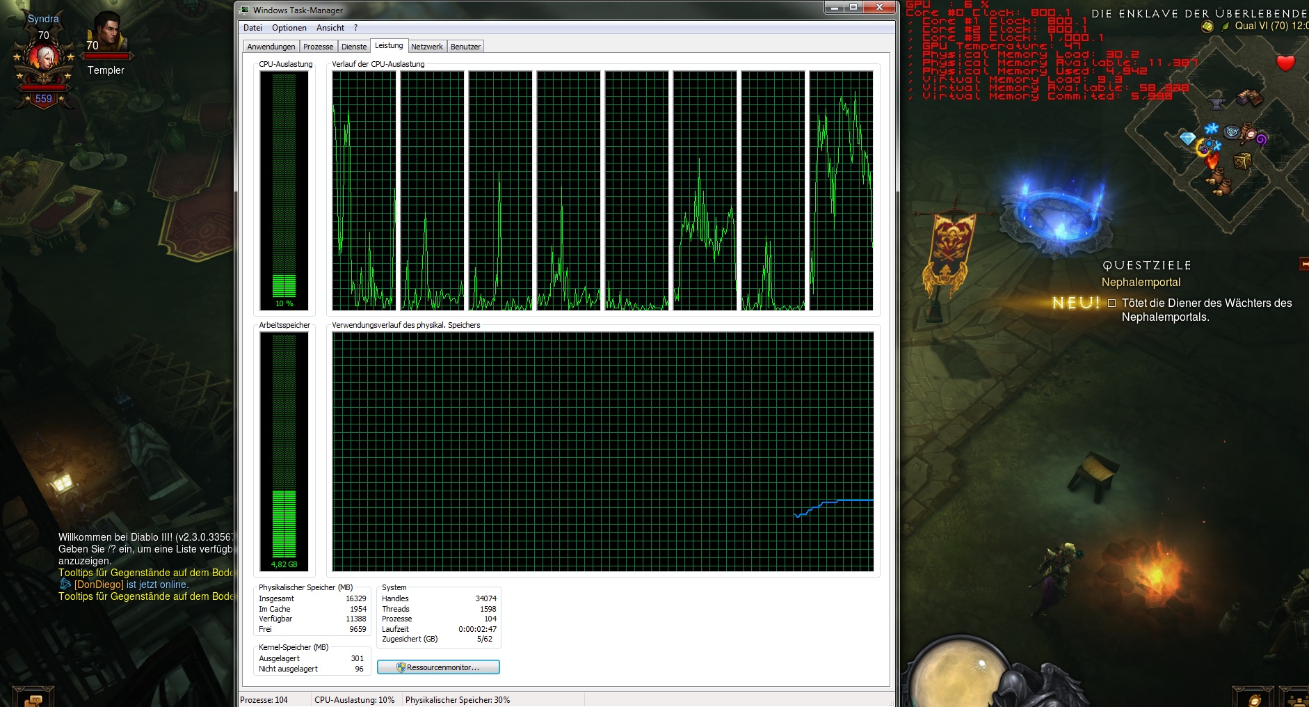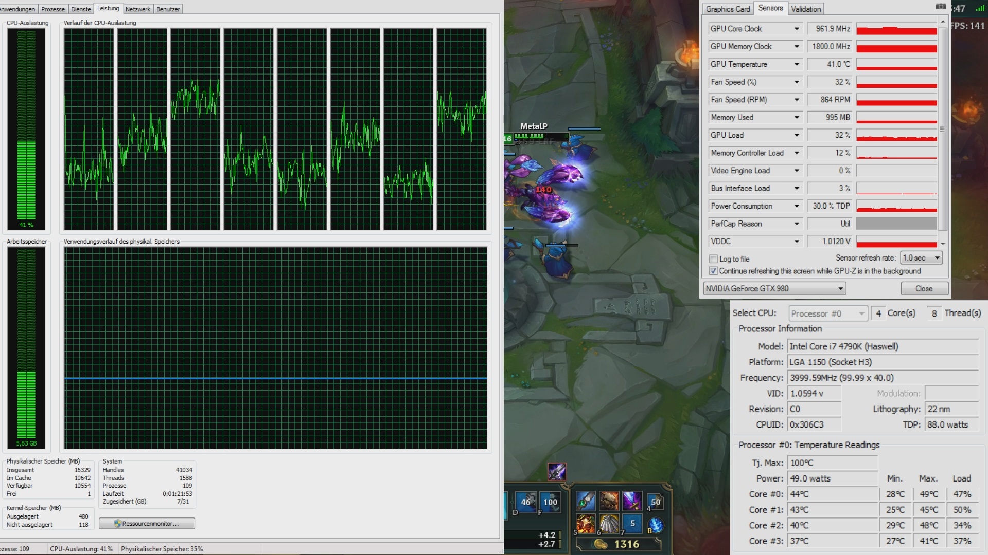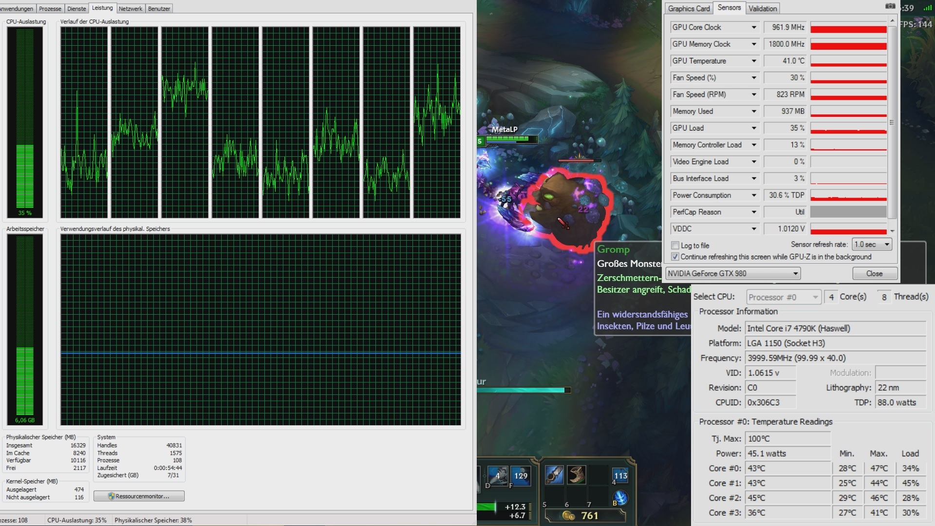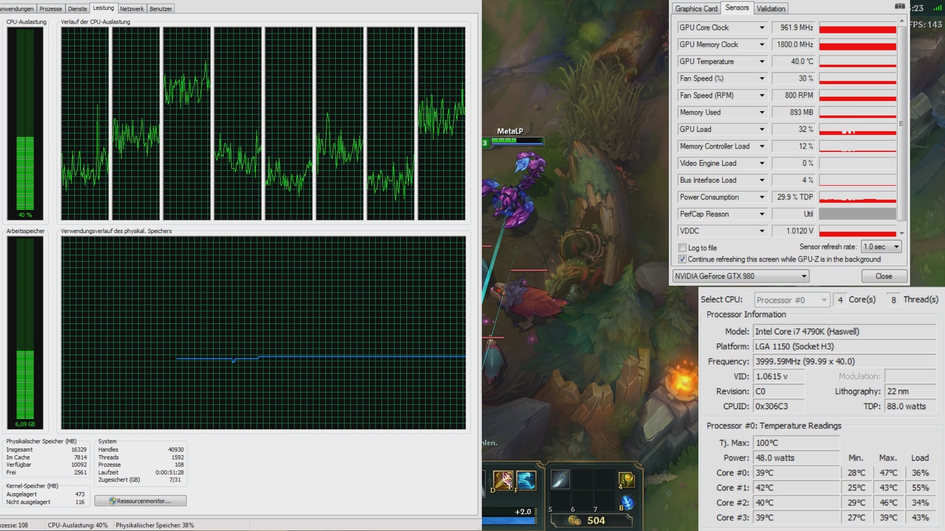 Neben bei läuft im Hintergrund meistens Skype, Steam, Origin, Kaspersky.