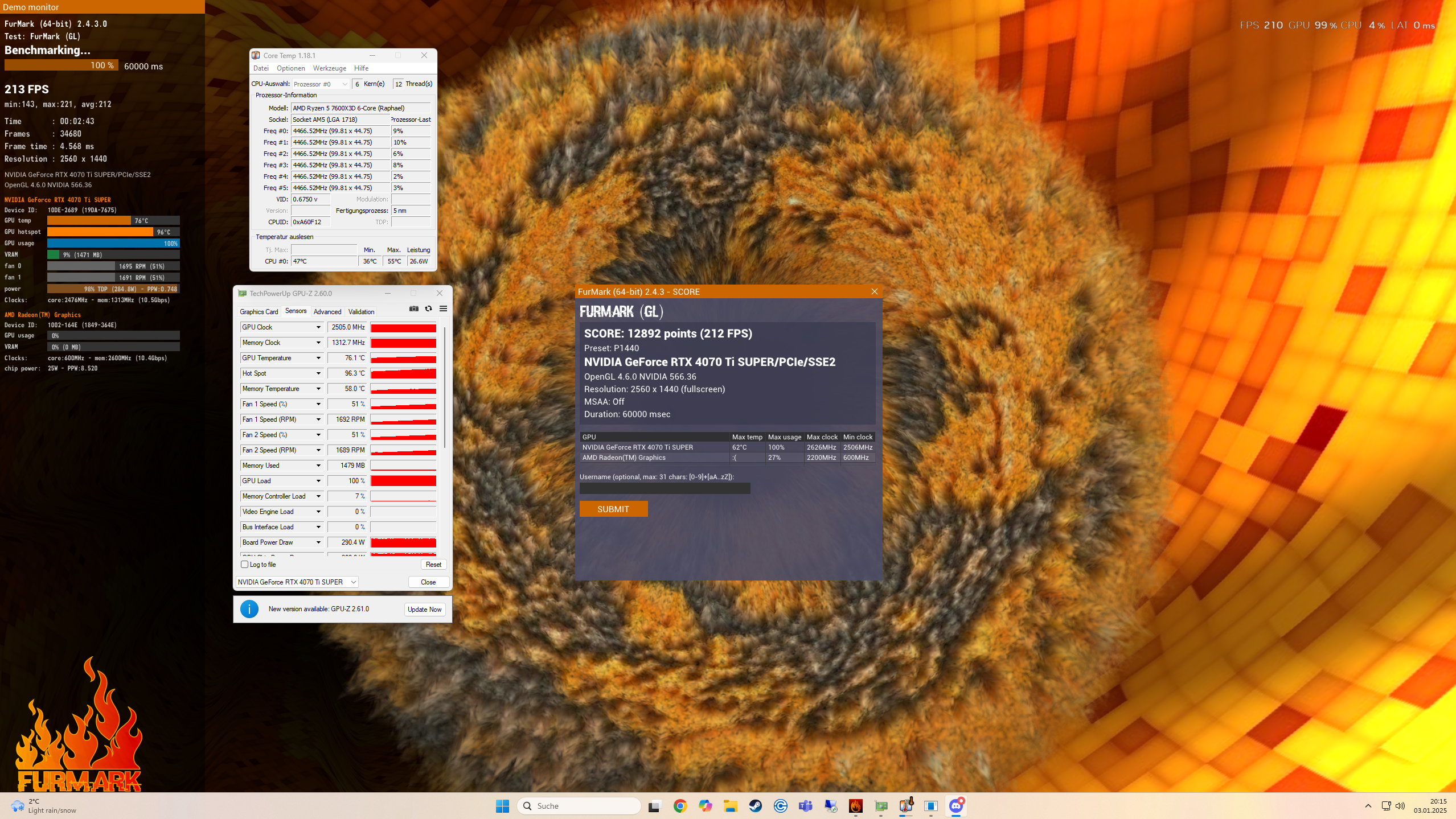 Das Programm "FurMark2" als Stresstest verwendet: selbes Ergebnis.