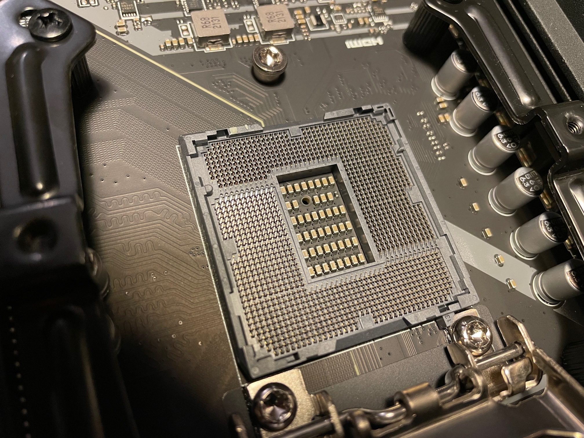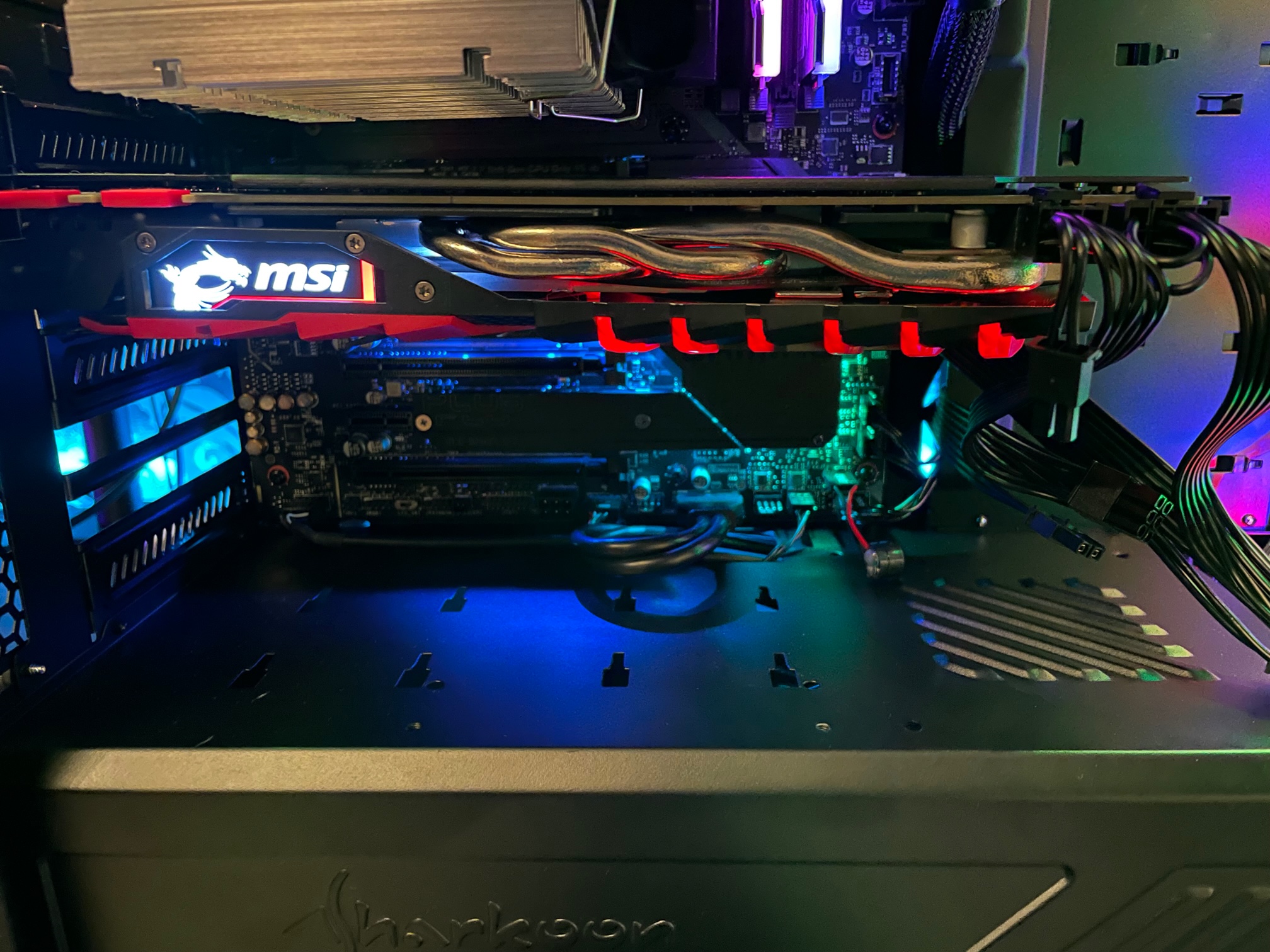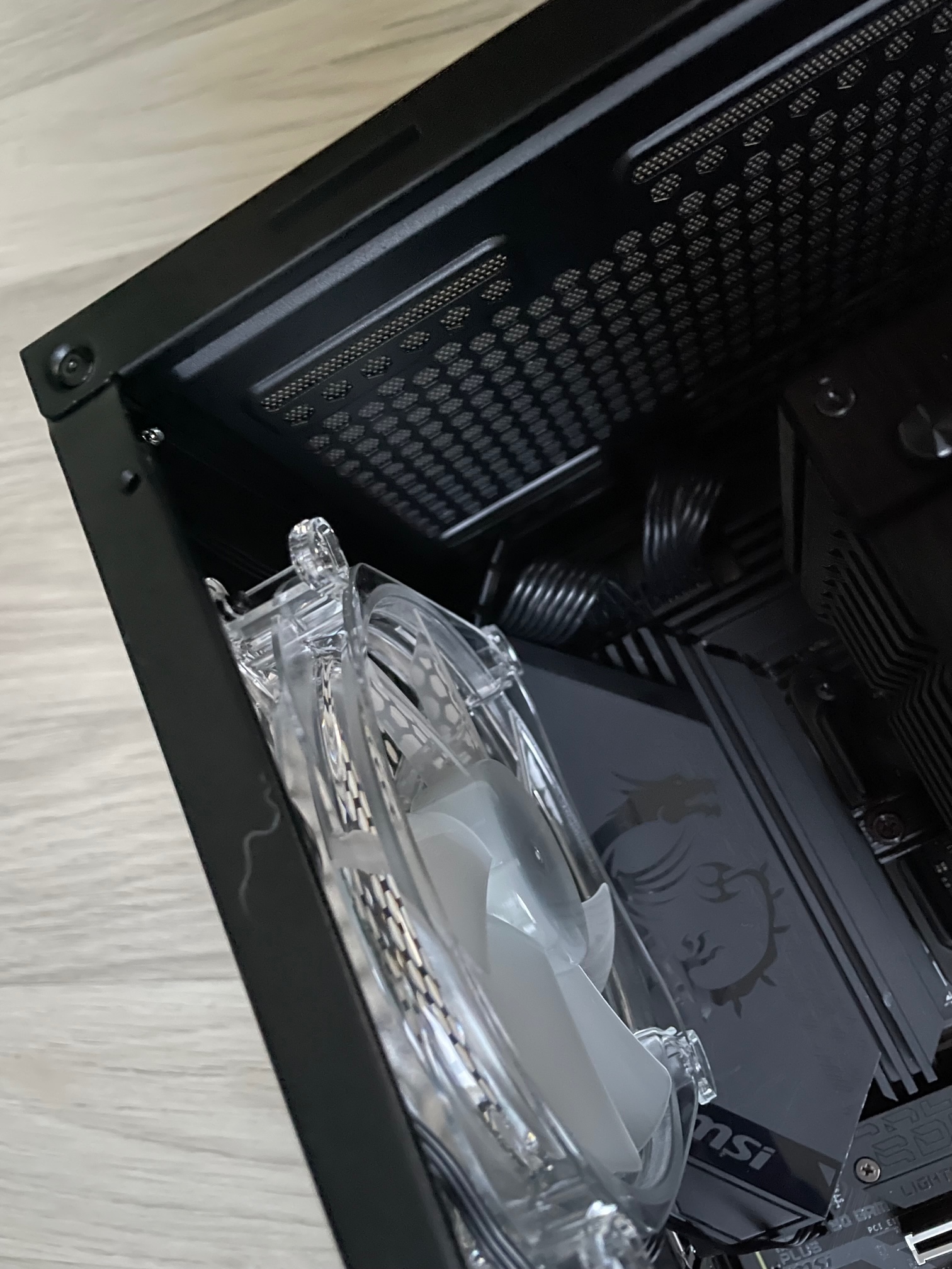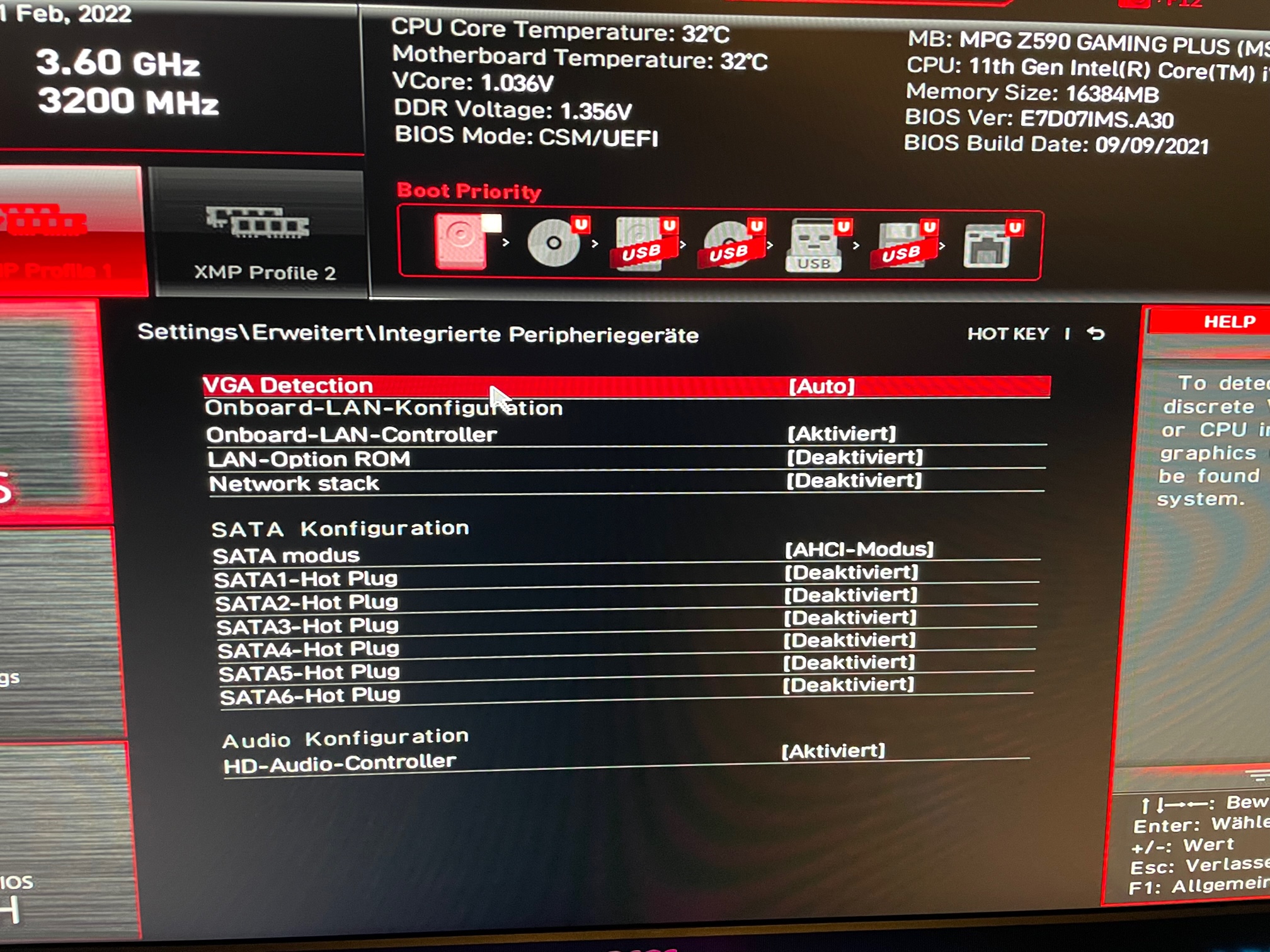 Aufgrund der aktuellen Preislage habe ich noch keine Grafikkarte zu dem System gekauft. Die Ausgabe sollte über den Grafikchip des Prozessors statt finden. Ich habe also alle Bauteile ordnungsgemäß zusammengebaut. ATX Strom und Prozessorstromkabel sind fest eingerastet. Mehr als auf den Bildern ersichtlich ist noch nicht eingebaut oder angeschlossen (außer die Frontpanel Stecker sind alle bereits auf dem Board aufgesteckt, siehe Foto). Die M2.SSD ist auf dem Steckplatz M2_1, welcher laut Anleitung für die Prozessoren der 11. Generation geignet ist.