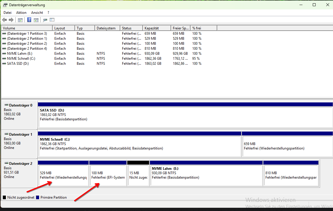 Und hier ein Screenshot von der Datenträgerverwaltung, der gewünscht war: