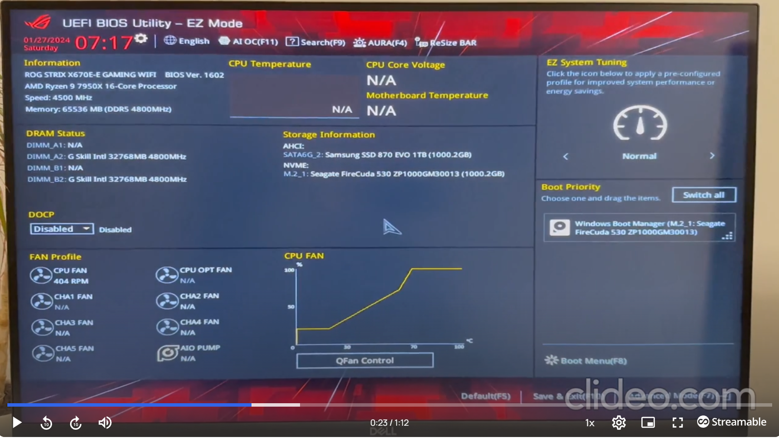 - Mainboard: Asus Rog Strix x670e gaming wifi