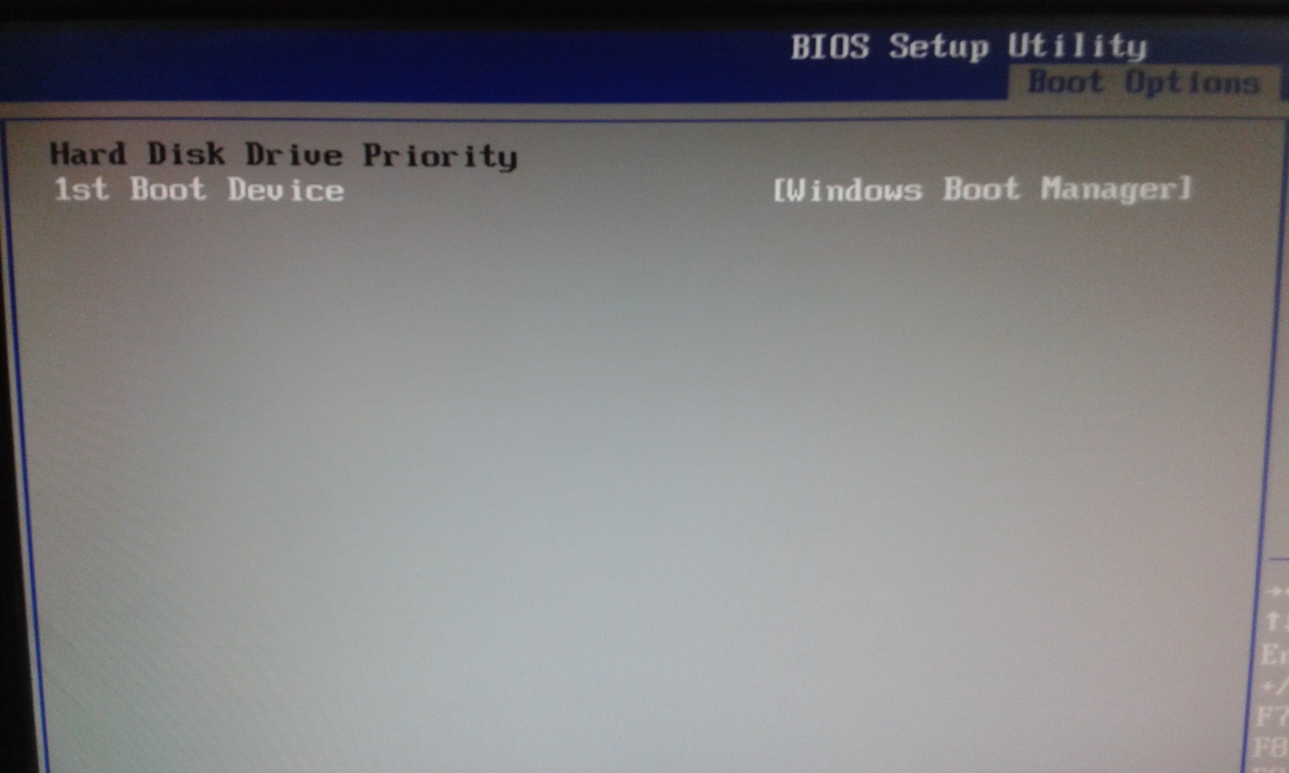 So, habe jetzt mal gemacht, was Ihr gesagt habt. Bei "Hard Disk Drive Priority" steht "Windows Boot Manager" (siehe Foto).