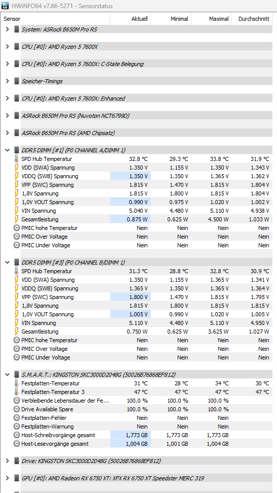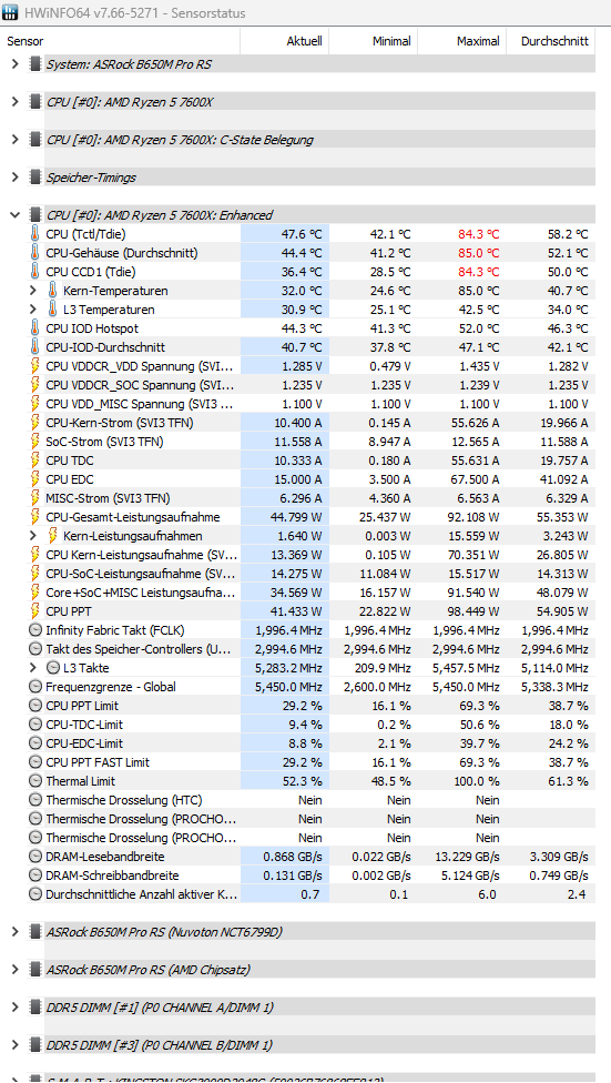 Die Temperaturen sehen normal aus, 85° ist schon hart an der Grenze.