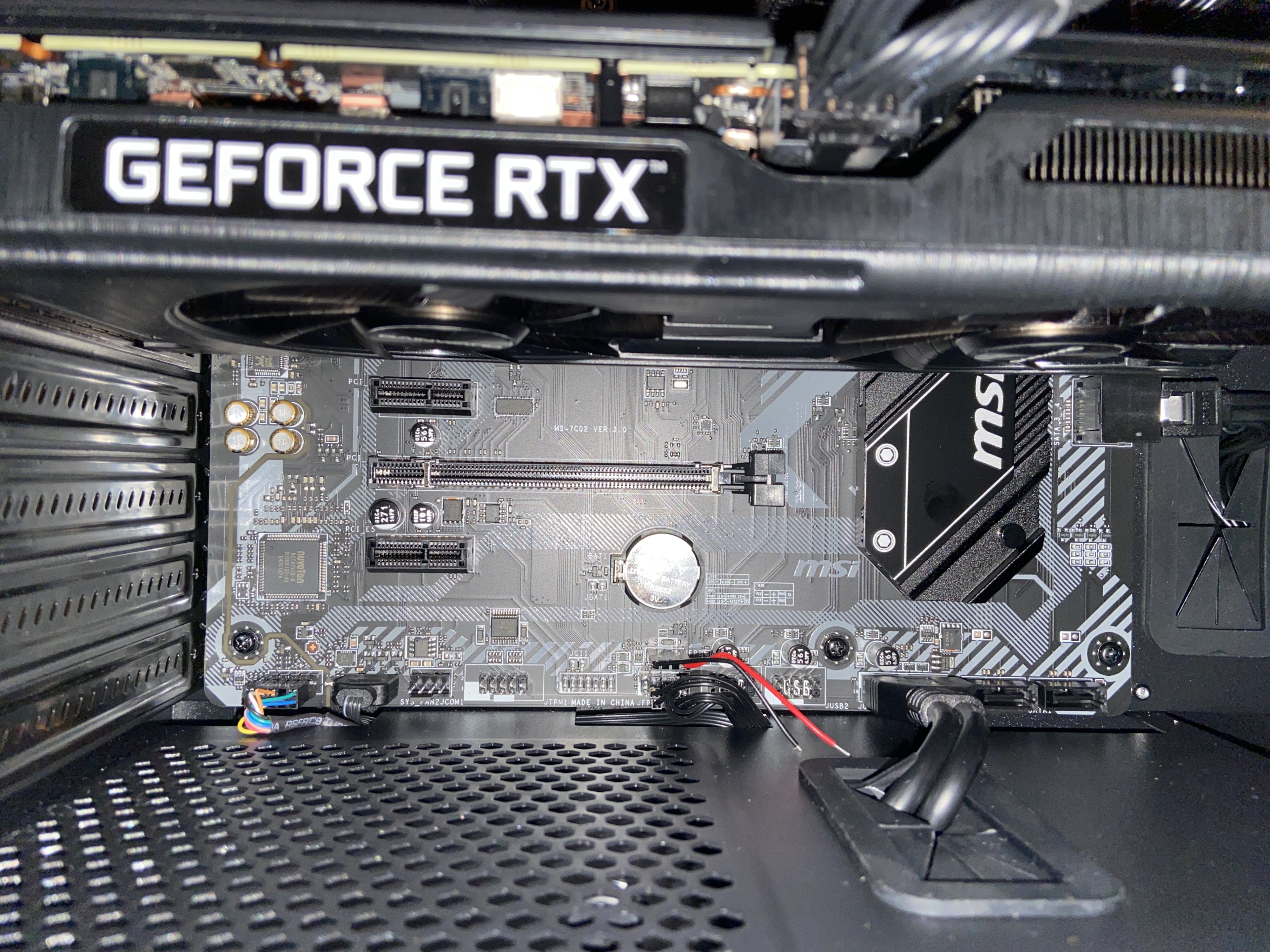 Dieses abisolierte Ex-Speakerkabel kannst du eigentlich abziehen. Das kann außer Kurzschlüssen nichts mehr produzieren. Ansonsten sind GPU und CPU allem anschein nach noch fest im Sockel. Wird wohl ein Fall für die Retoourenabteilung bei Mifcom.