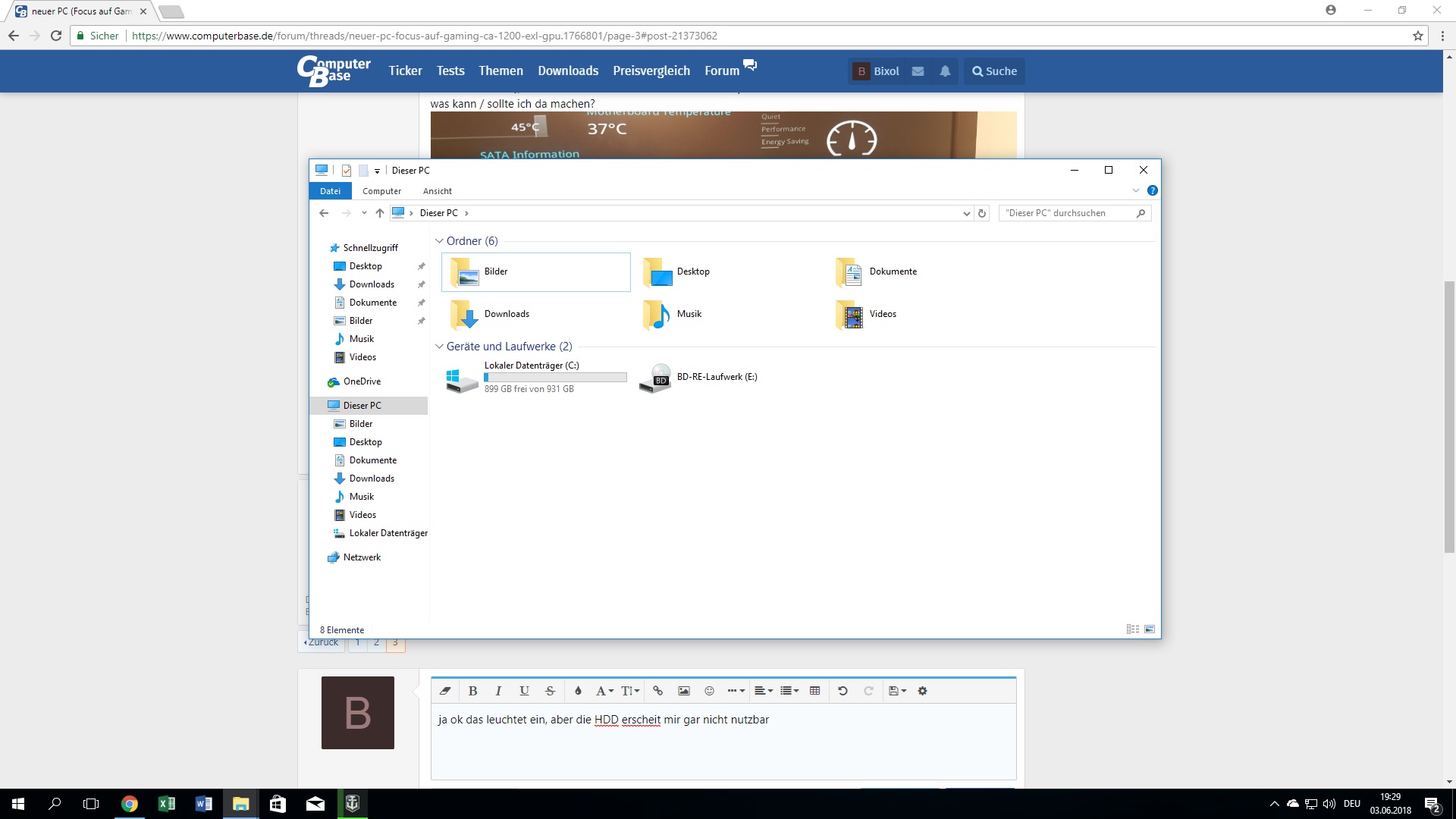 ich hatte diese ja anfangs nicht an den strom angeschlossen damit windows sauber auf die SSD geladen wird.