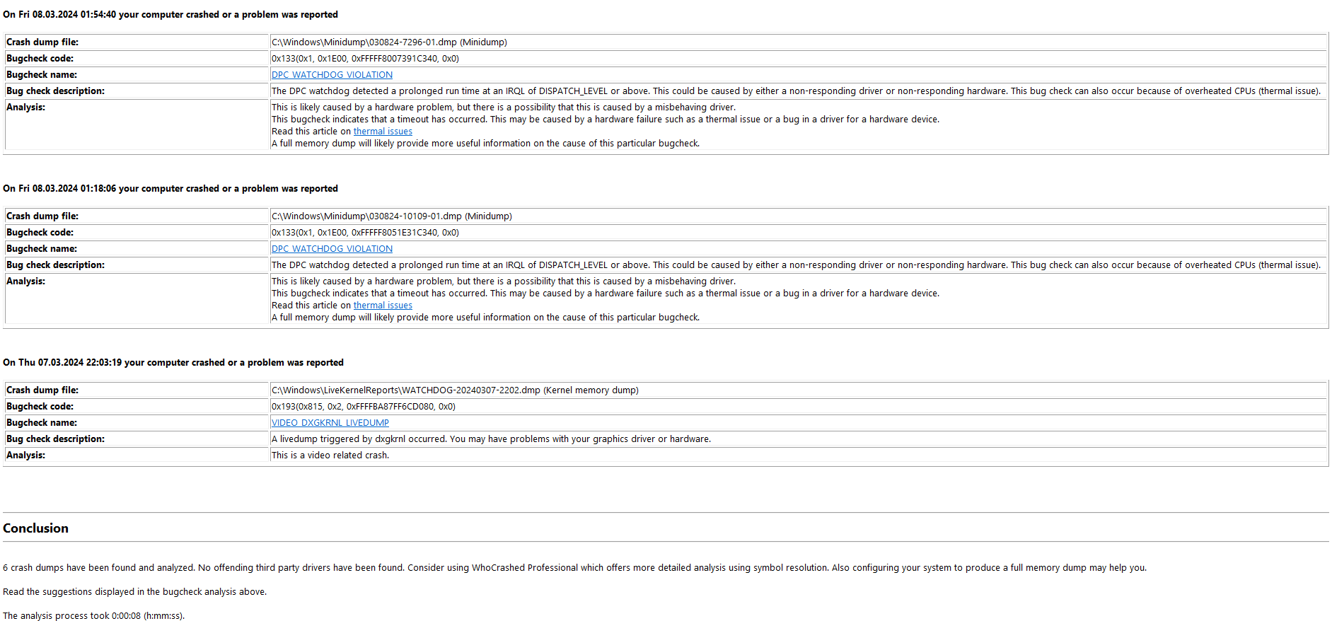 6. WhoCrashed runtergeladen für das Protokoll vom Absturz (Screenshot zu allen bisherigen Crashes im Anhang)