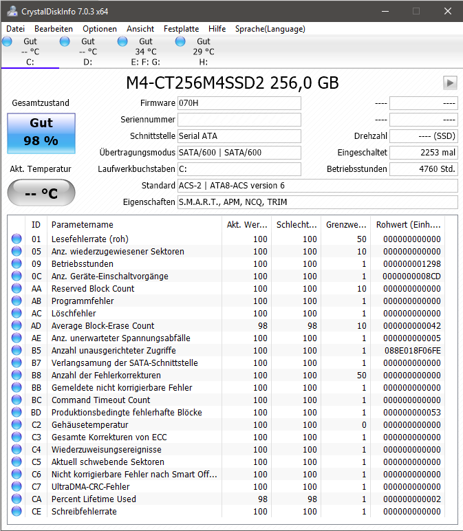 Firmware der SSDs habe ich gestern noch geupdatet, da es dort ja auch Mal diverse Bugs gab.
