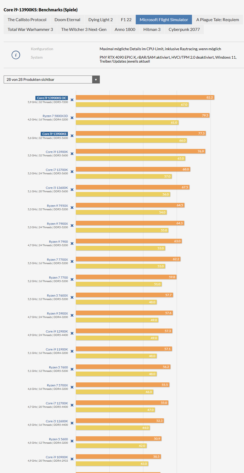 Ich habe mir im Sommer nach 23 Jahren wieder einen komplett neuen PC zusammengestellt, und zwar gezielt für den Microsoft Flight Simulator 2020 (mit online-Anbindung). Wichtig war mir, dass der Stromverbrauch im Rahmen bleibt, denn ich lasse ihn gerne abends mal 2-3 Stunden mit einigen wenigen Kurskorrekturen einfach über die Landschaften fliegen und schaue parallel auf Google Earth nach, wo ich bin oder hinfliegen möchte. Ich bin nach langer Recherche und Abwägung ziemlich genau bei der AMD-900€-Konfiguration herausgekommen, und zwar mit einer Radeon RX6600, da dies die absolute Mindestkonfiguration ist. Die RTX3050 wäre teurer und stromhungriger gewesen, und alle Karten darunter sind nicht leistungsfähig genug. Die 130 W TDP habe ich also in Kauf genommen. Schon wegen des Stromverbrauchs dürfte die Rechenleistung der Karte über der von Xbox Series X und PS5 liegen. Die aktuelle Konfiguration sieht so aus: