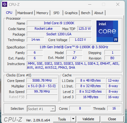 11th Gen Intel(R) Core(TM) i9-11900K @ 3.50GHz 3.50 GHz