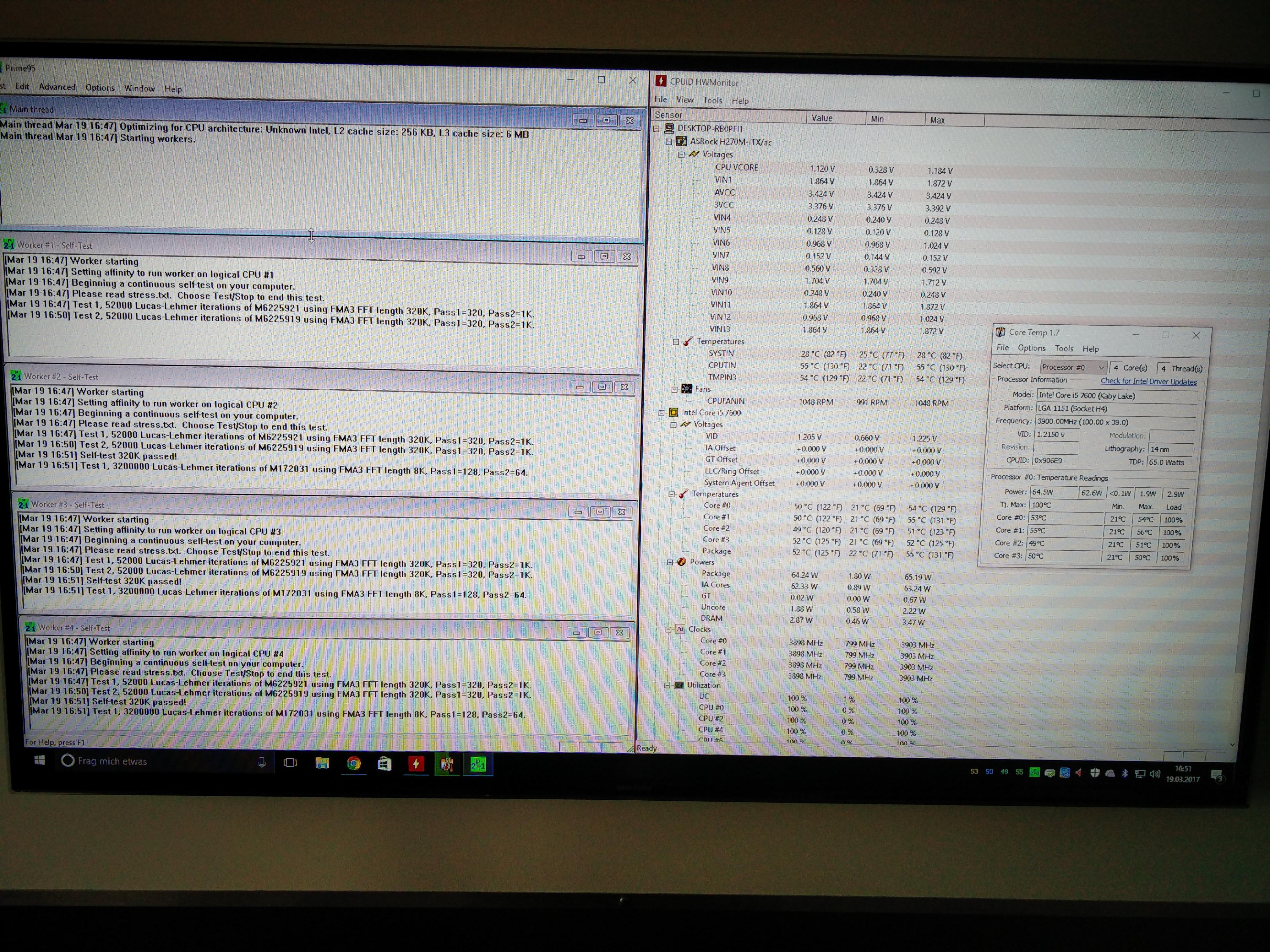 Leider geht der PC nach 5~ Minuten Prime95 aus und lässt sich für die nächsten 30-60 Minuten nicht mehr starten.