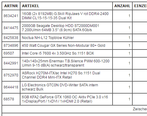 ich habe einen neuen Computer zusammengebaut. (weitesgehend ähnlich wie in der itx gaming pc faq)