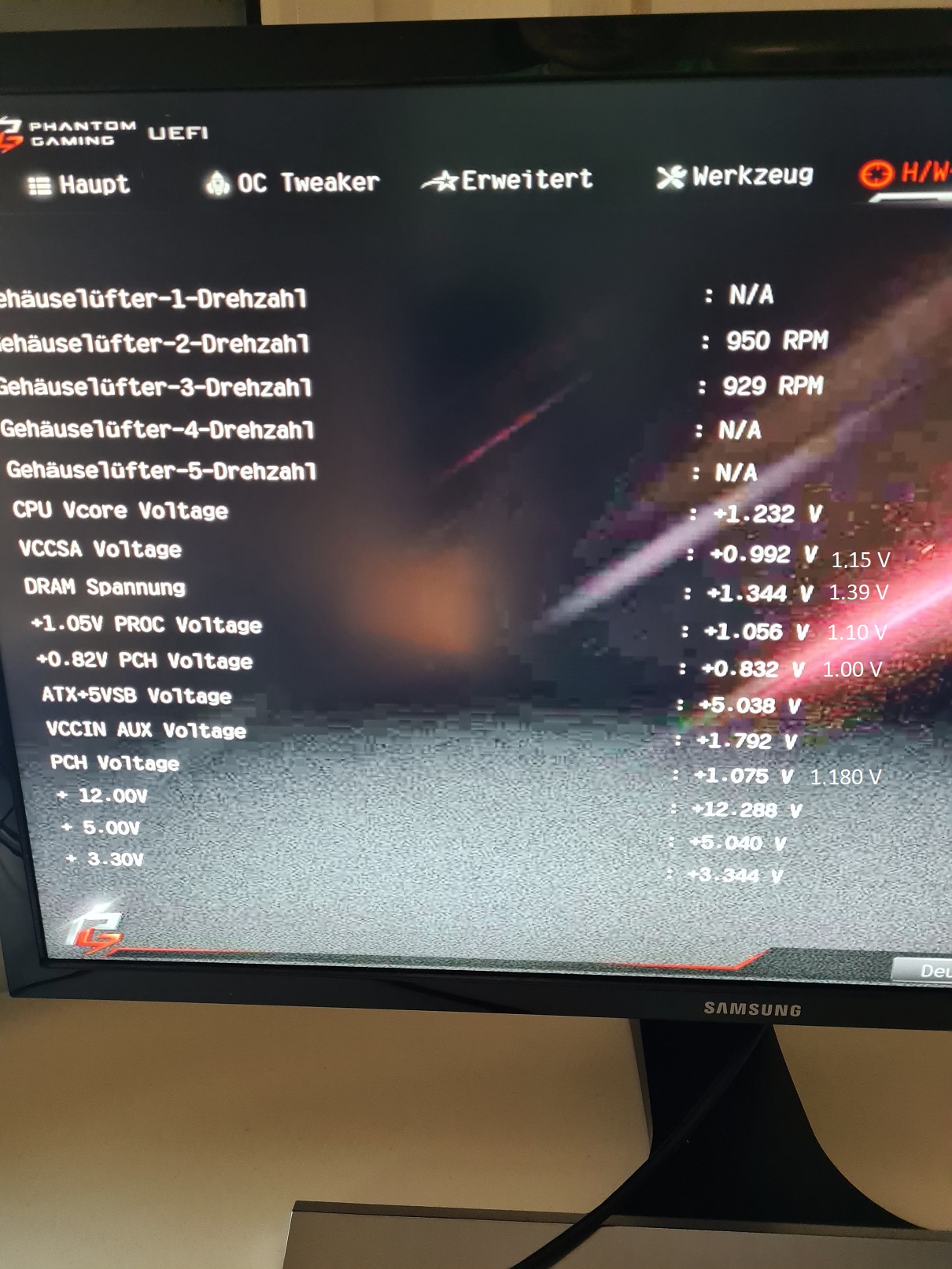 schon versucht?BmwM3Michi schrieb:wenn du dich traust kannst du mal im Bios ein paar Spannungen erhöhen und damit testen.