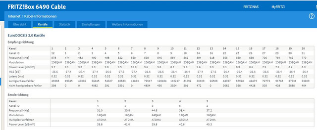 werden alle 24 kanälle (DOCSIS 3.0) in der fritzbox angezeigt
