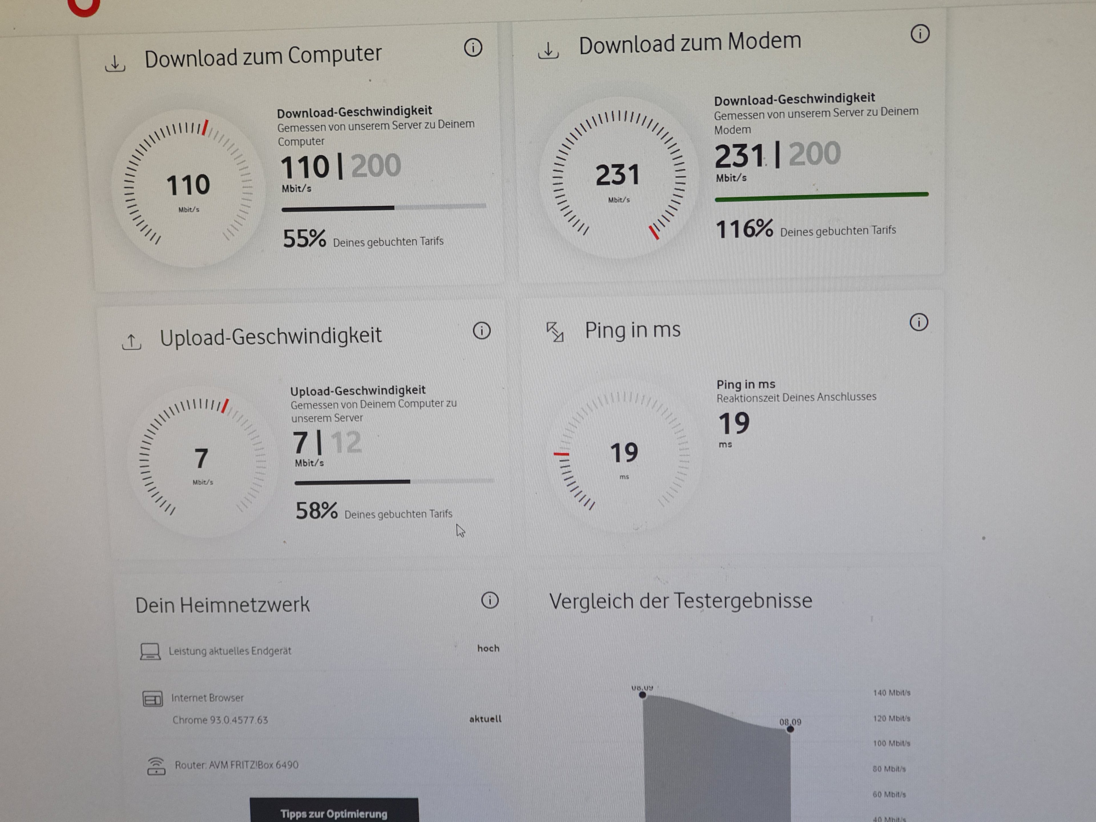 kommen die volle geschwindigkeit am router an ( mal ohne wlan nur lan kabel testen)