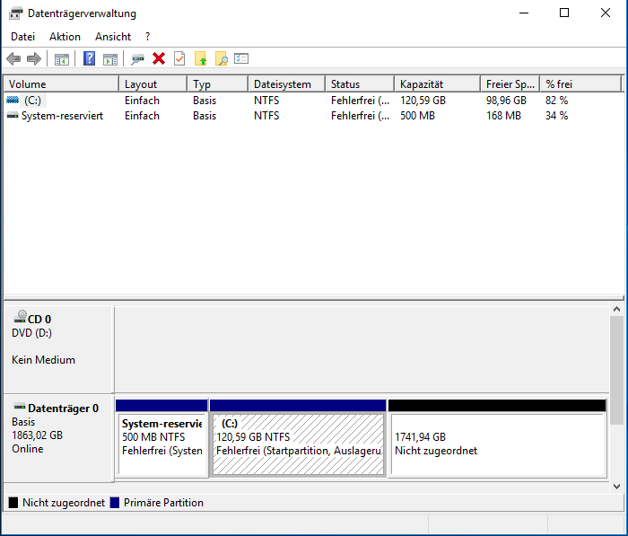 Oder gleich rechtsklick auf das Windows Symbol unten links und dann sollte da auch direkt Datenträgerverwaltung stehen.