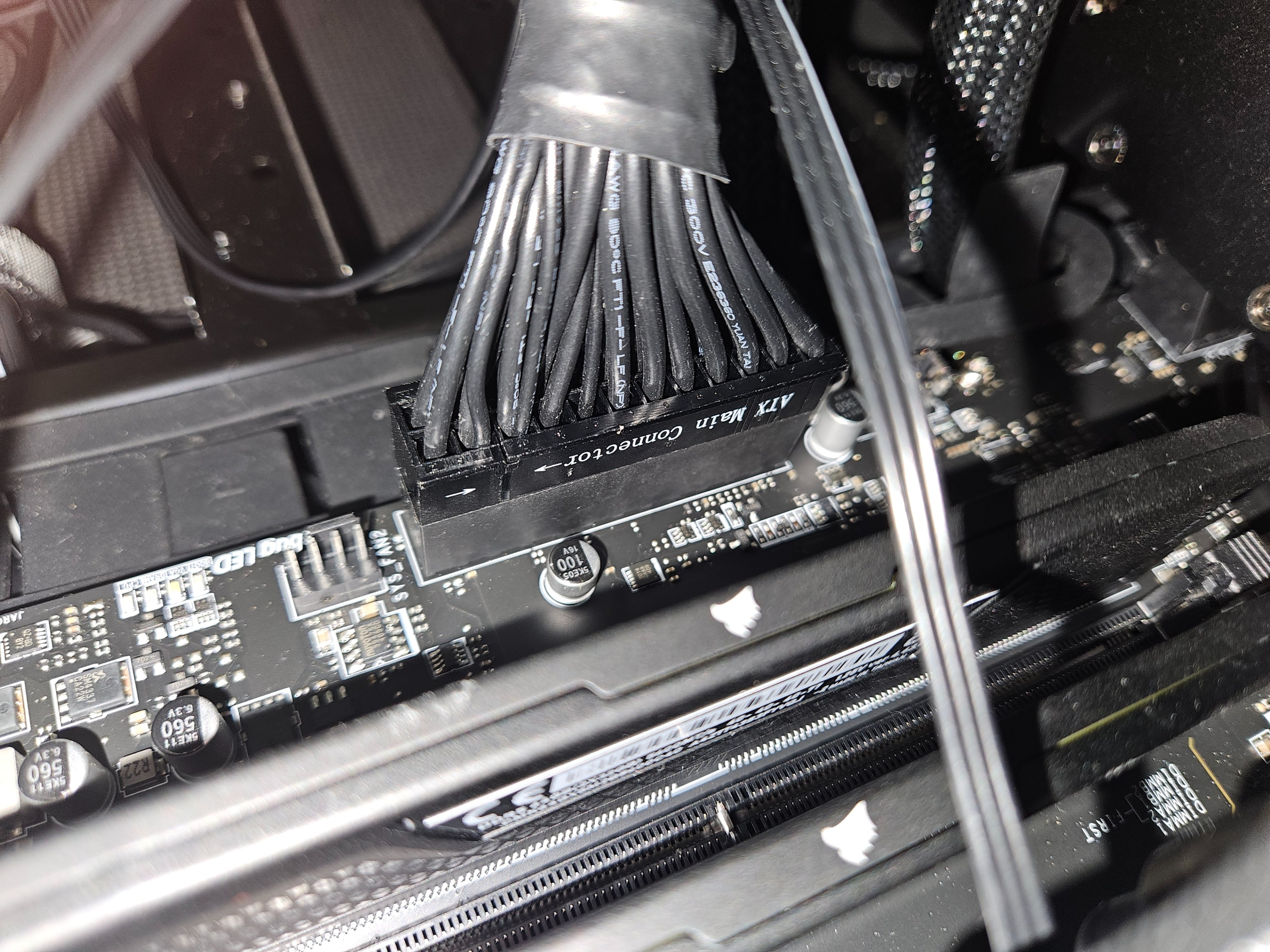 - Hab zur Sicherheit gerade auch alle Kabel sowohl an Mainboard wie auch an Netzteil nochmal ab und angesteckt und es nochmal probiert ohne das es was gebracht hat.