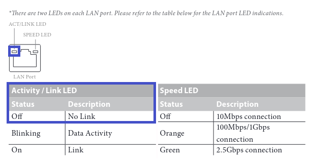 So lange die Activity/Link-LED am Ethernet-/LAN-Anschluss nicht leuchtet, besteht keine Verbindung!