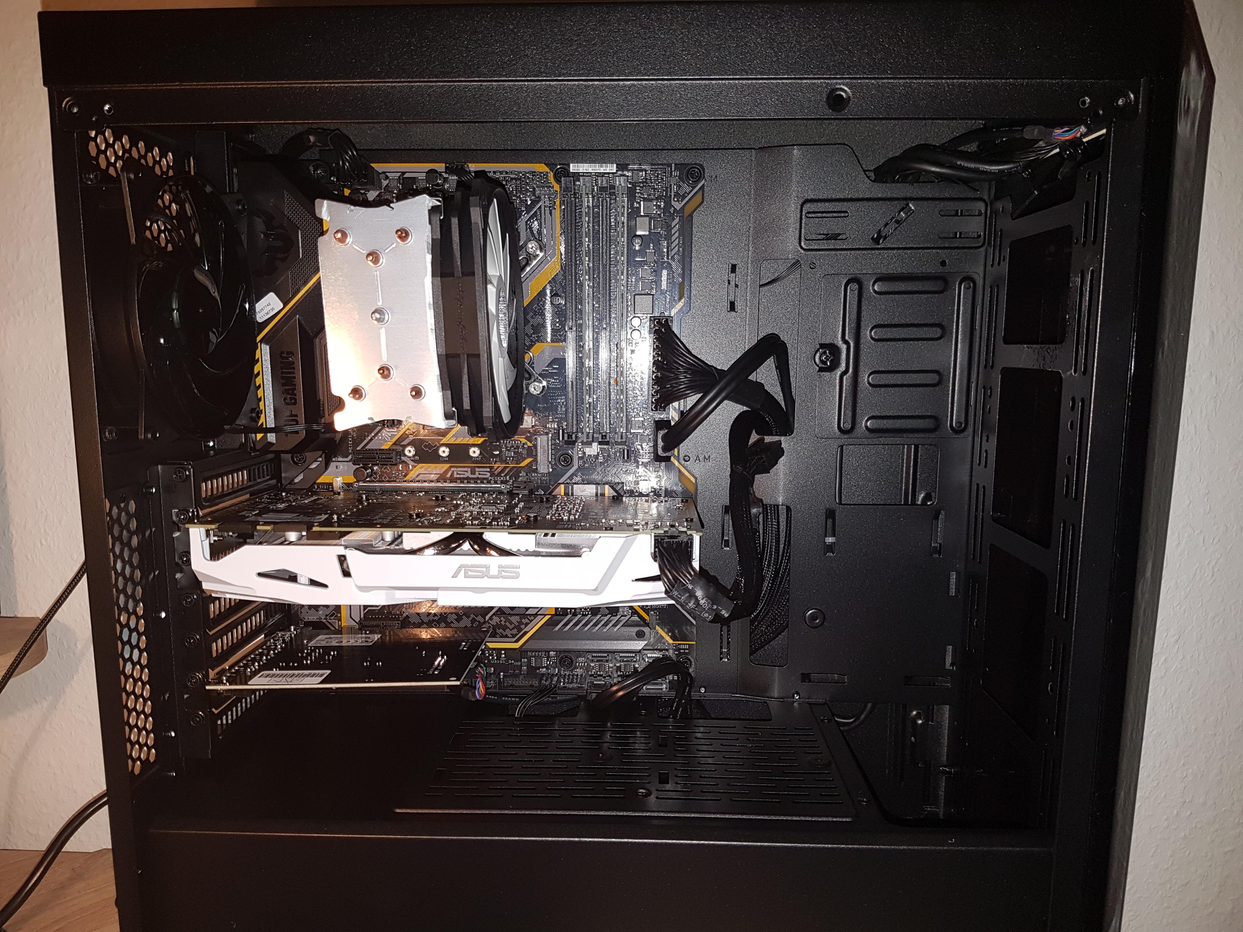 Das Gehäuse kommt nur mit einem vormontiertem 120mm Hecklüfter daher. Selbst mir als Laie ist klar, dass hier nur warme Luft rausbefördert wird, jedoch keine Kaltluft ohne weitere Lüfter in das Gehäuse kommt. Beim Anzocken von Elex ging die GPU Temperatur bereits auf 75 Grad.