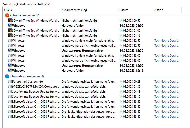 Temperaturen sind bei den Crashes aber völlig in Ordnung. Unmittelbar vor dem Crash CPU ca. 65-70Grad und GPU ca. 75-80Grad.