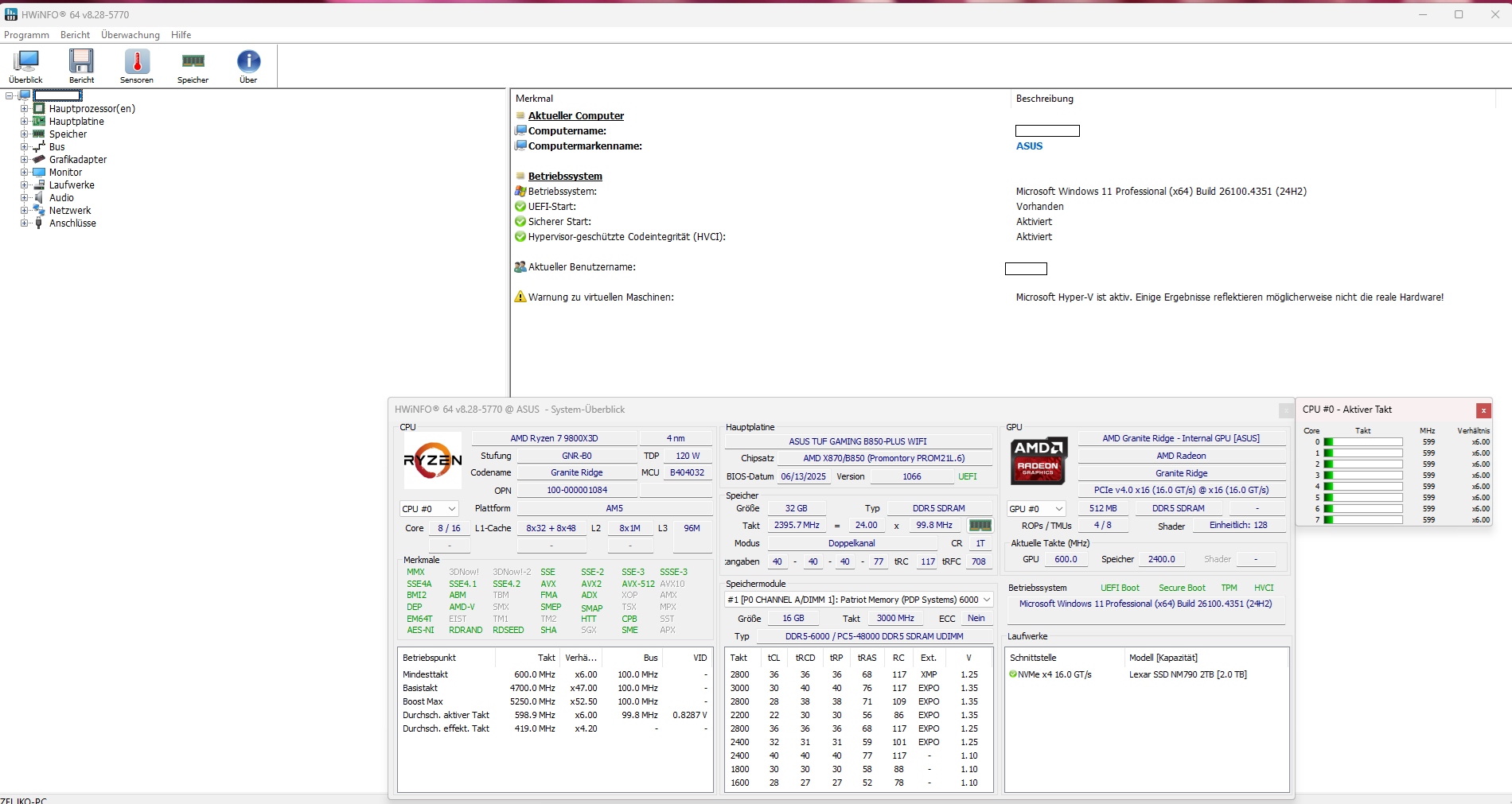 - Prozessor (CPU): AMD Ryzen 7 9800x3D
