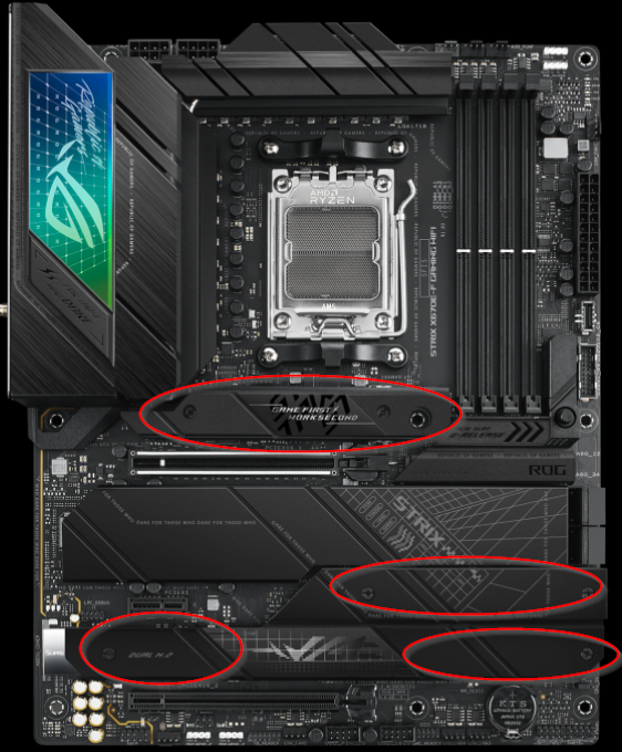 Das Motherboard wird ein ASUS ROG STRIX X670E-F GAMING WIFI mit einem AMD Ryzen™ 9 7950X3D, Prozessor.