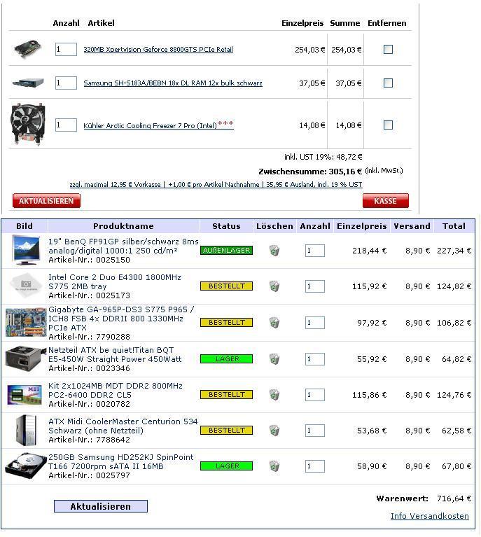 Heute wird die Bestellung abgeschickt und ich habe mich für eine Konfiguration entschieden (Hoffe das bleibt bis heute nacht so