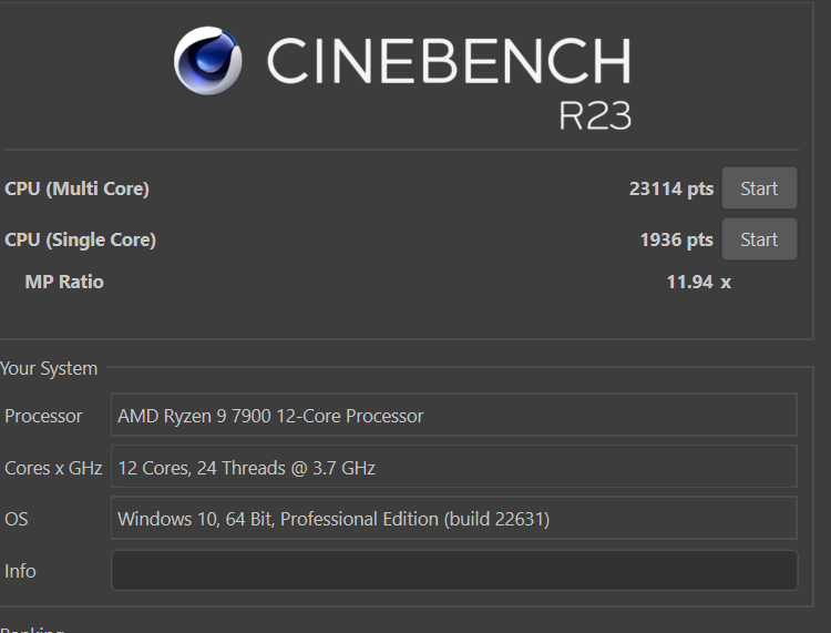 Habe nun die Lüfterkuven nochmals angepasst und einen Single- wie auch Multicore Test gemacht mit Cinebench R23: