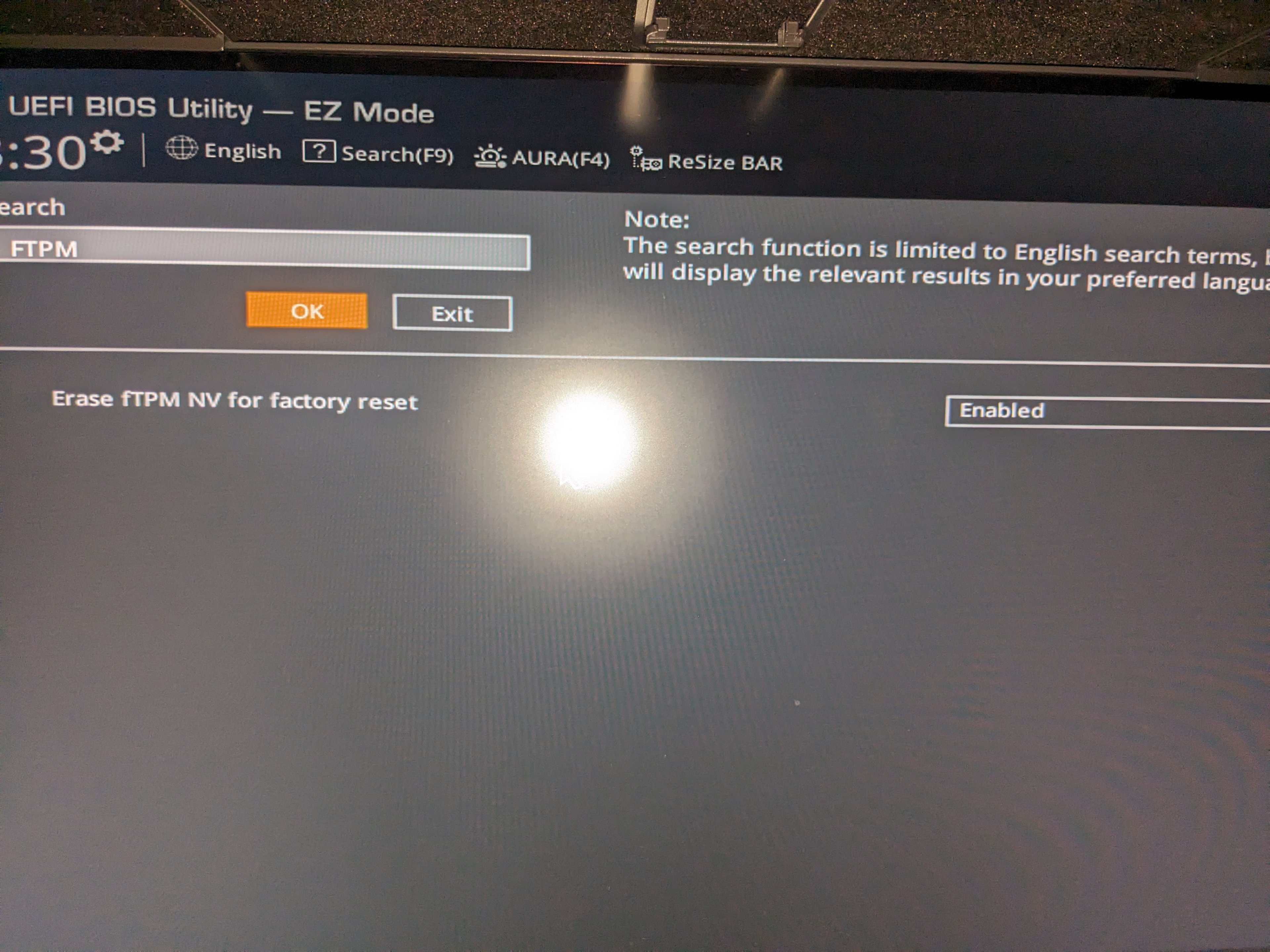 FTPM muss auch an sein und natürlich CSM aus.P.Diddy85 schrieb:Ich verstehe es nicht. Müsste doch funktionieren
