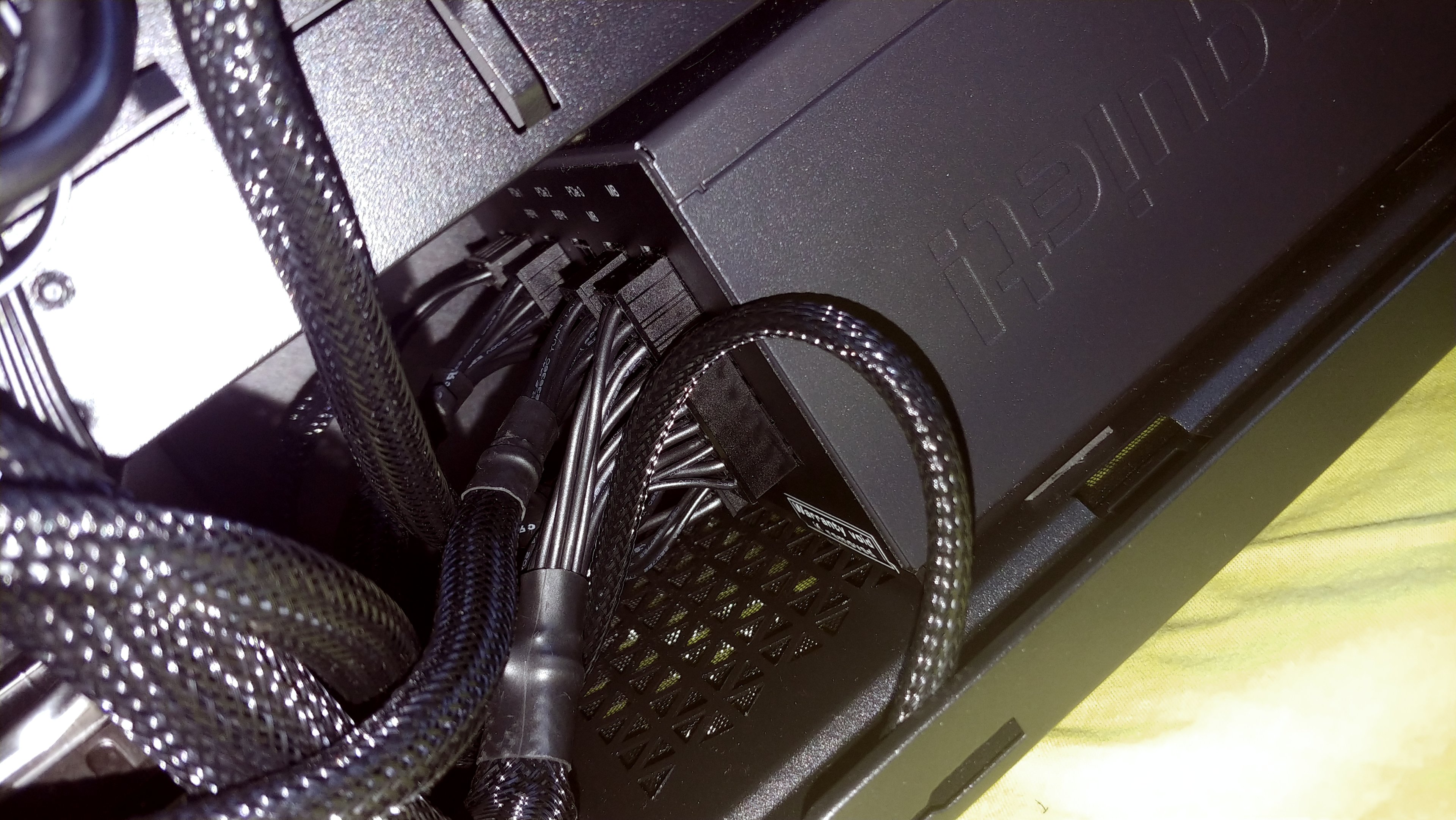 Alle Stecker steckten richtig und ich habe keine Fehler erkennen können. PCIe 6+2-Kabel (Anschluss an GraKa) des Netzteils habe ich auch auf die vorgegebenen Steckplätze gesteckt.