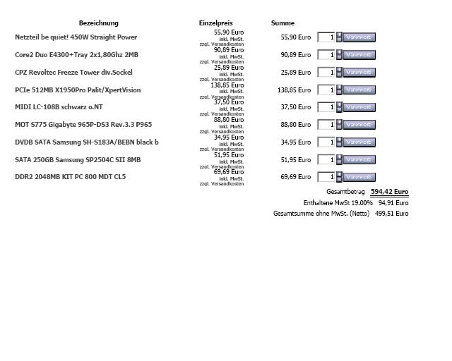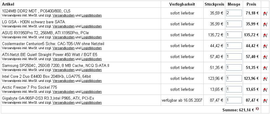 Gleich mal vorweg > bin nicht zu dumm und auch nicht zu faul mir die Preise zusammen zu glauben, mich würds nur interessieren welche Komponenten Ihr in einen PC verbauen würdet, damit ihr auf ca. 600 Euro kommts und der PC trotzdem "halbwegs" spieletauglich ist?
