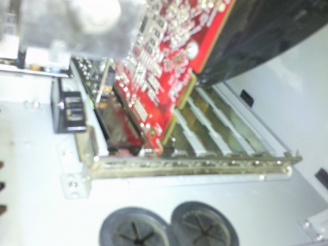 Wundert mich aber etwas, dass die direkt darunter liegende Grafikkarte einwandfrei passt. Sitzt die auch richtig im Slot (so dass die Kontakte im Slot gleichmäßig versenkt sind)?