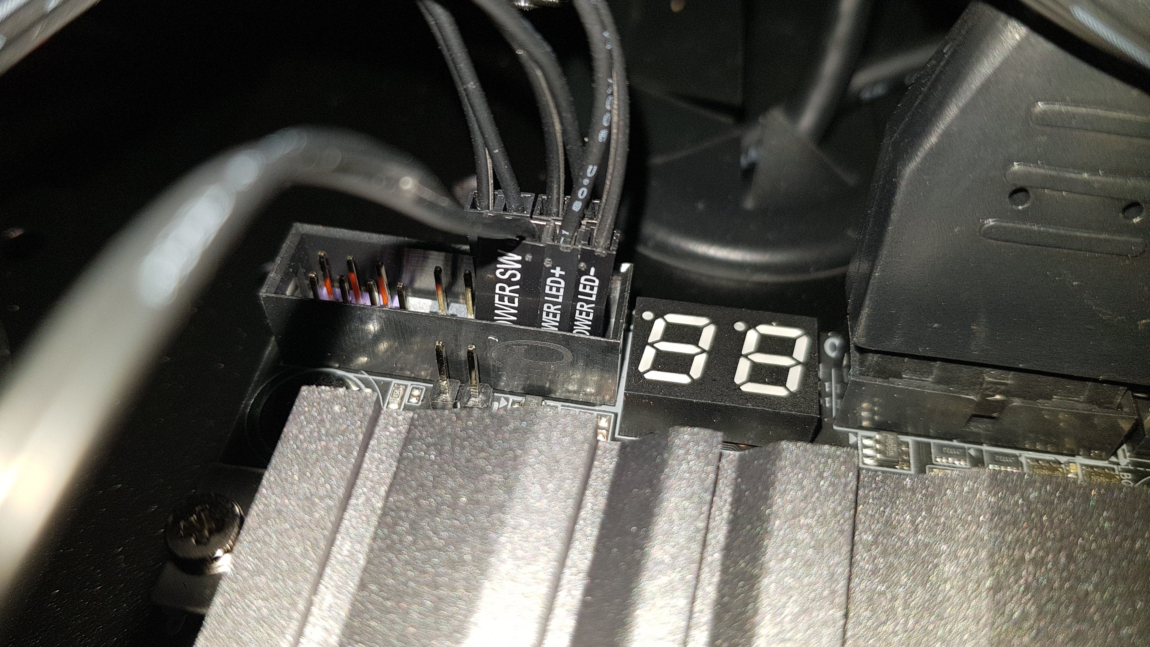 Wenn ich das Stromkabel hinten einstecke, blinkt ganz kurz das Logo auf dem Mainboard und das wars dann.