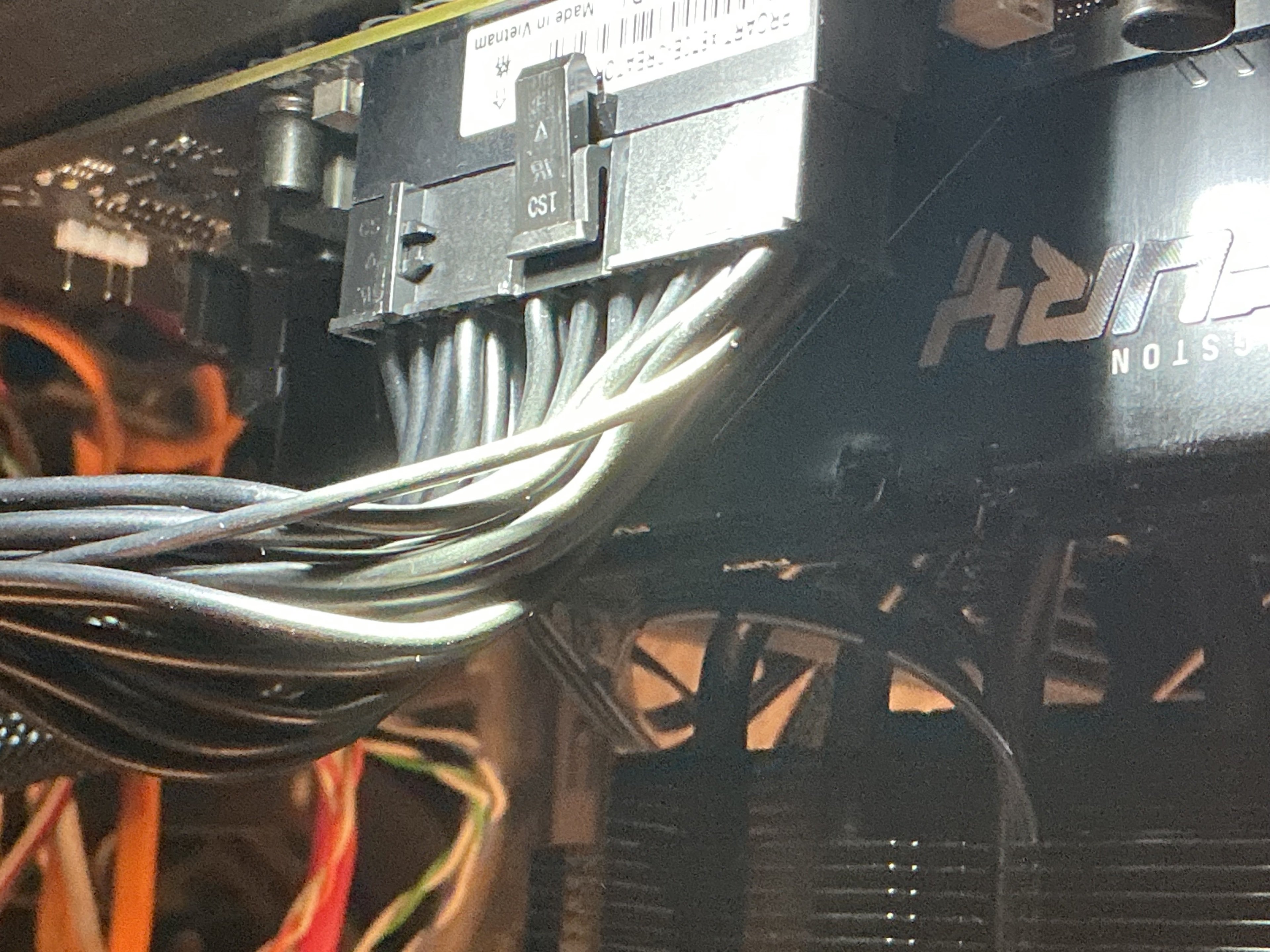 Ja genau das meine ich, wenn die Verriegelungslasche nicht greift, sitzt der Stecker nicht korrekt drinnen. Zieh den kompletten ATX 12V stecker raus und mache ihn so rein, dass die lasche zugreift. Man sieht ja auch, dass dort ein Spaltmaß zu sehen ist, der Stecker sitzt nicht richtig.
