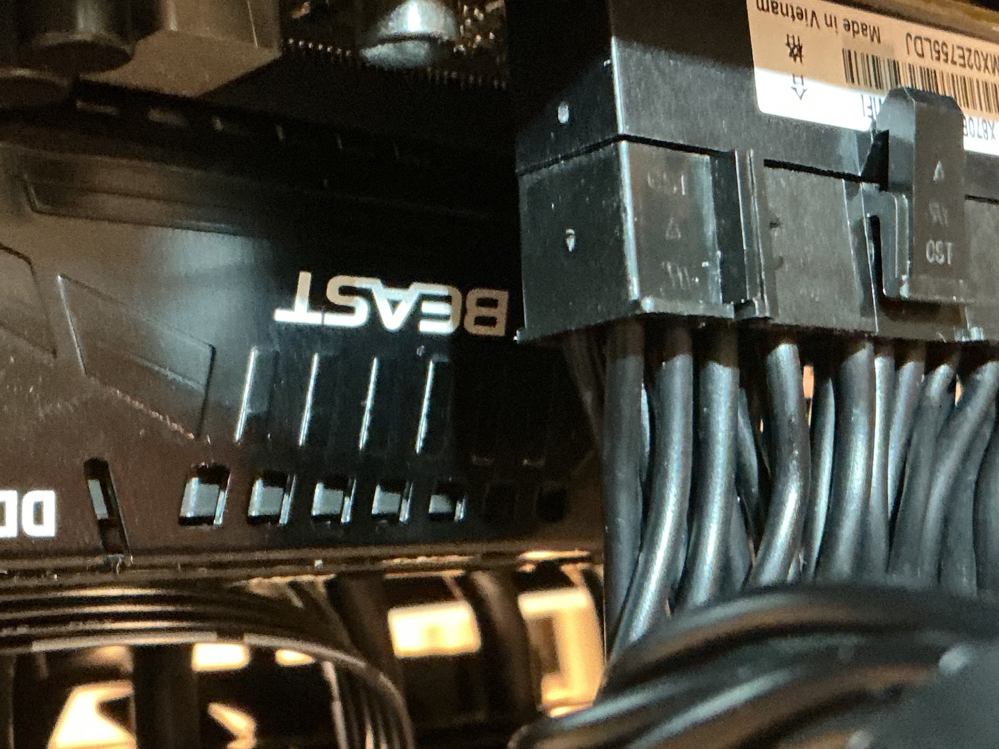 Hier ist das Kabel vom Gehäuse so ein bequemer "all in one" Stecker, der nicht aus mehreren kleinen Einzelsteckern für LEDs, On-Botton und Restart Button besteht.