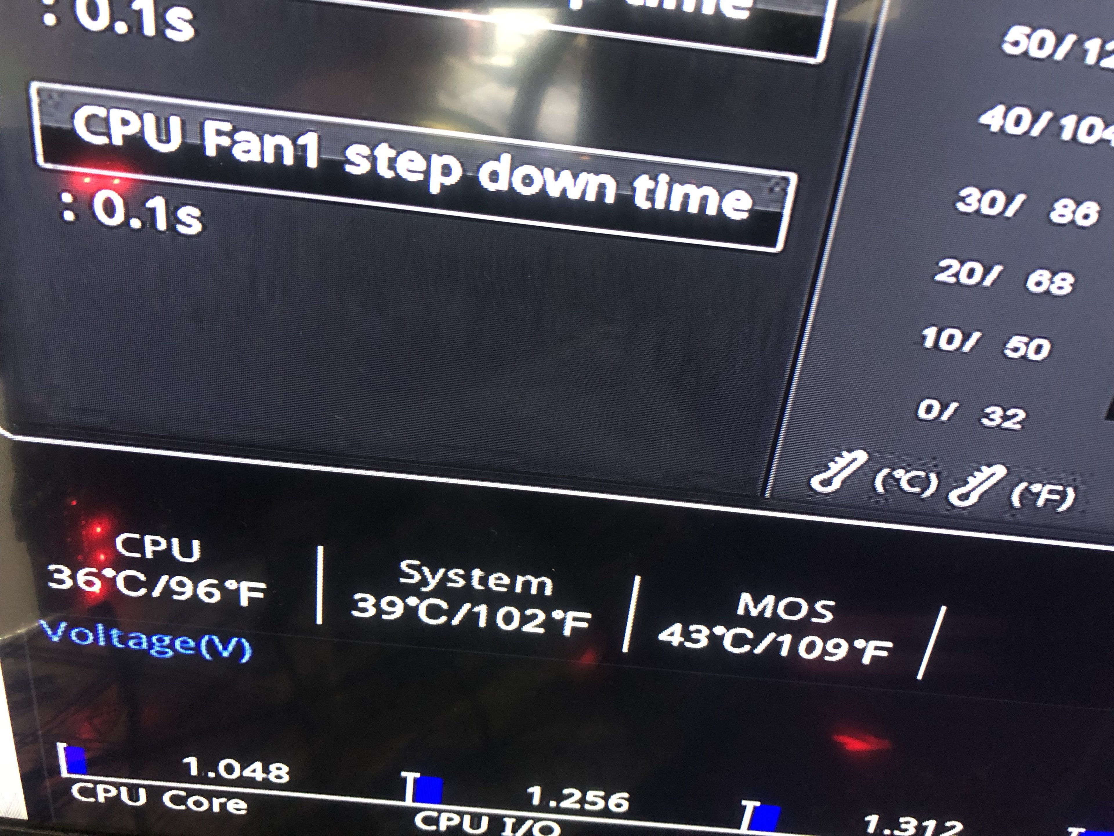 Nun kam ich ins BIOS, CPU 44 Grad, nach fünf Sekunden wurde das Bild schwarz aber das System lief. Über das Netzteil hab ich dann ausgeschaltet und beim erneuten anmachen leuchtete wieder CPU.