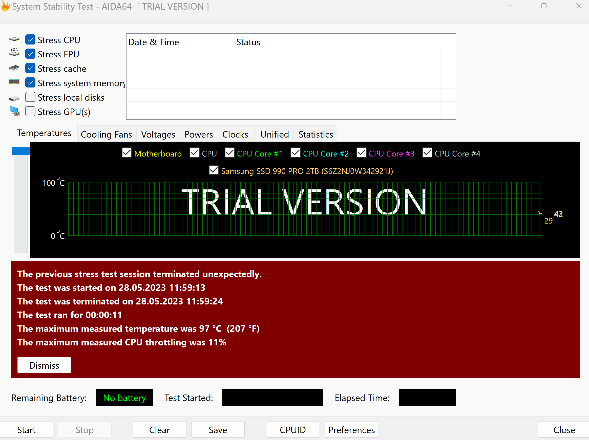 - CPU Test: Wird sehr heiß 97°c funktionierte aber 5 Minuten ohne Probleme