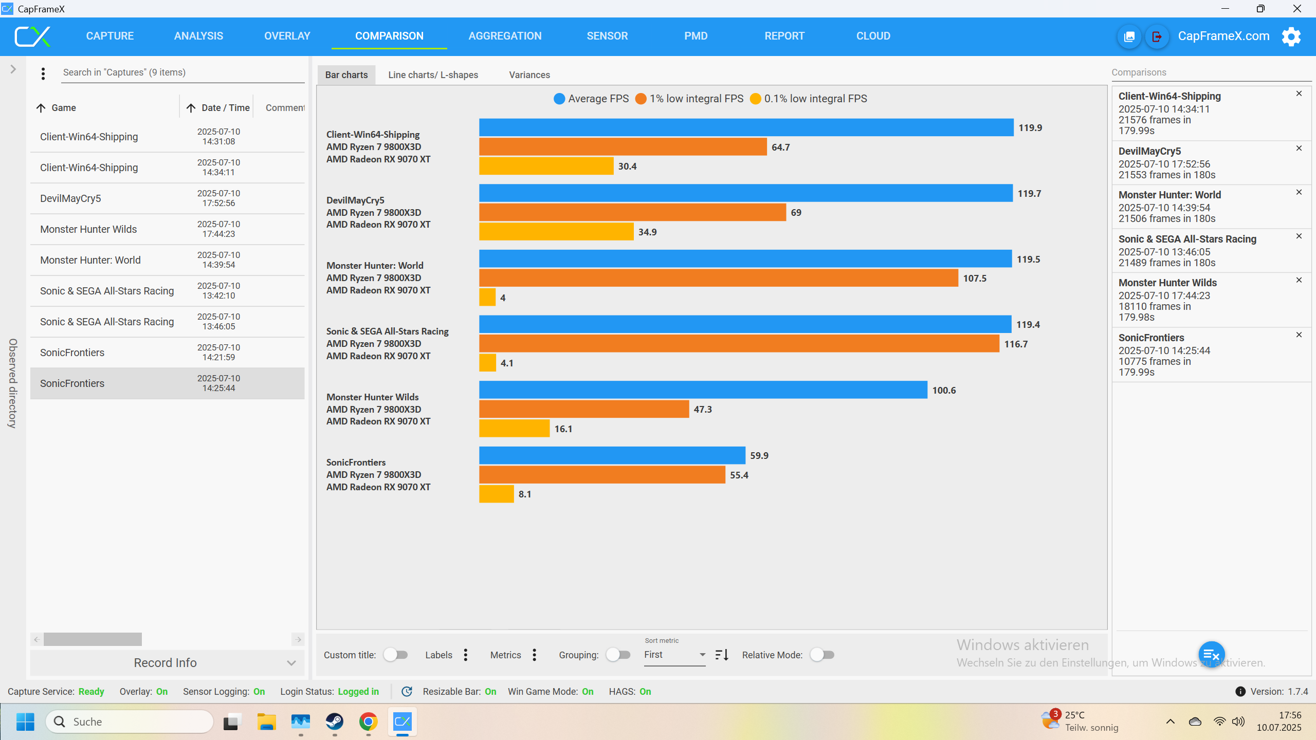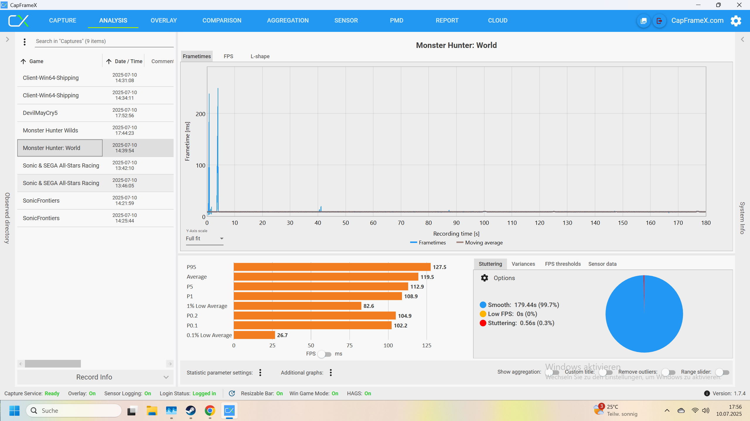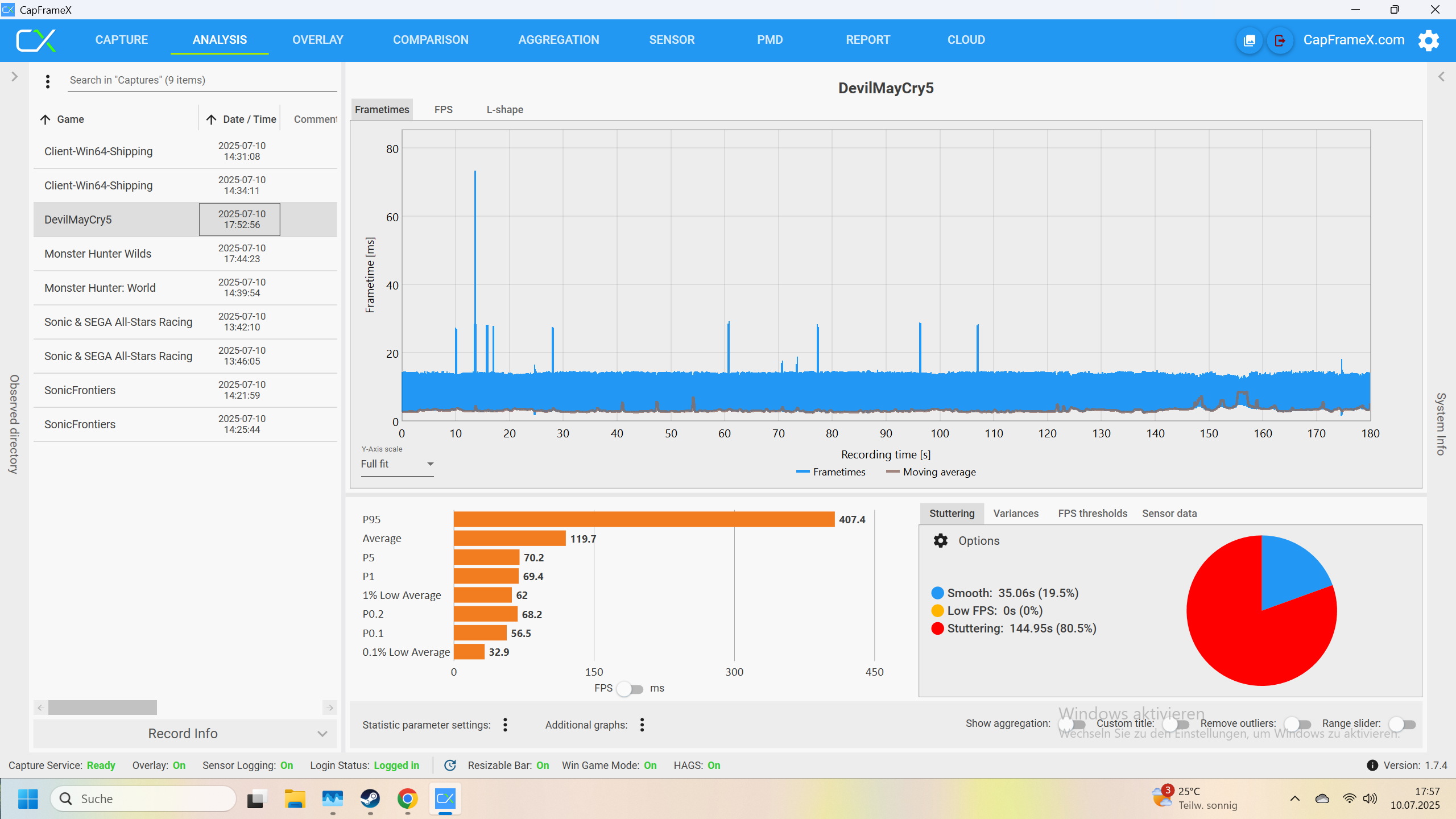 Ich habe jetzt noch Devil May Cry 5 und Monster Hunter World runtergeladen und teste diese. Das werde ich dann hier ergänzen.