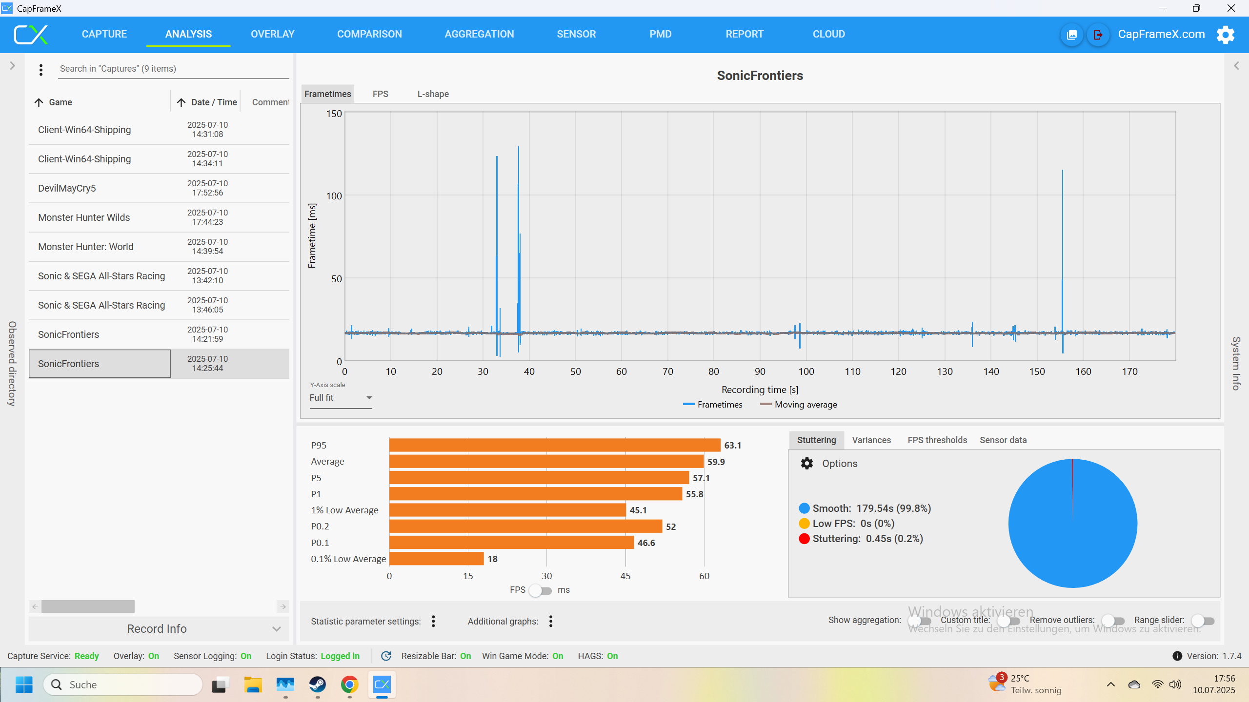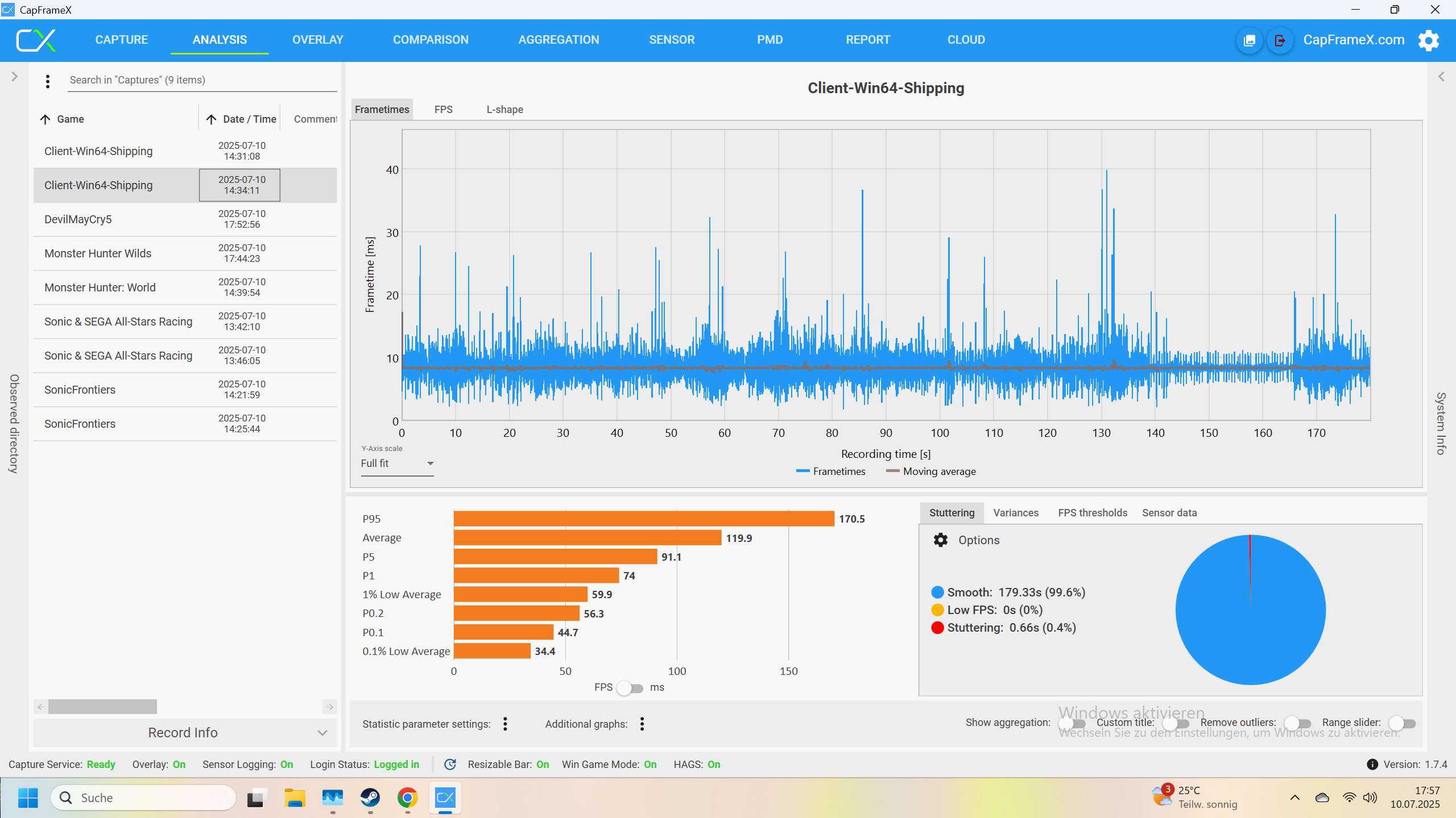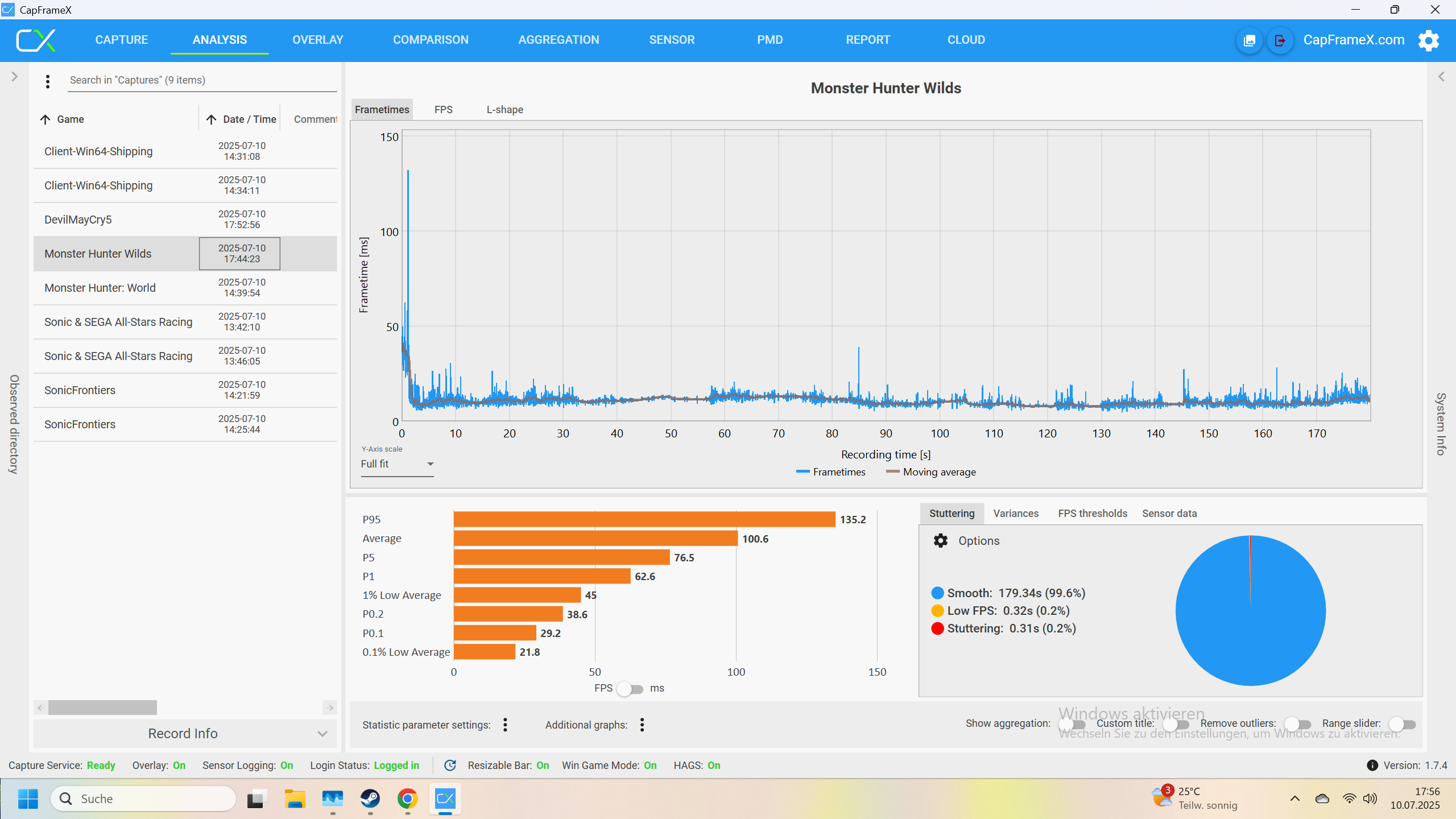 Ich habe jetzt noch Devil May Cry 5 und Monster Hunter World runtergeladen und teste diese. Das werde ich dann hier ergänzen.