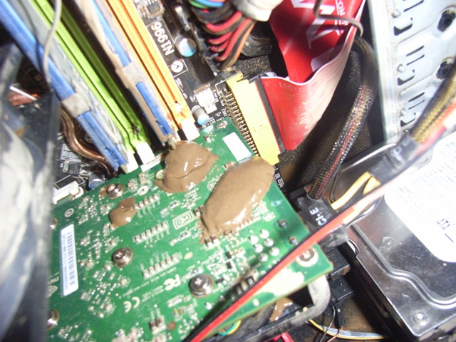 da am Donnerstag mein komplettes Kellerzimmer überflutet wurde, bis auf Höhe Rolladenkasten, wurde auch mein neuer PC (im Februar 2008) + Flatscreen und weitere Komponenten in Mitleidenschaft gezogen. Sprich, der PC wurde mit Wasser und z. T. durchgespült, sah aber hinterher bei der Bergung wieder ganz "okay" aus. Zur Info: De PC und alle weiteren strombedürftigen Komponenten hingen an einem Mehrfachstecker, der zum Zeitpunkt der Überflutung ausgeschaltet war.