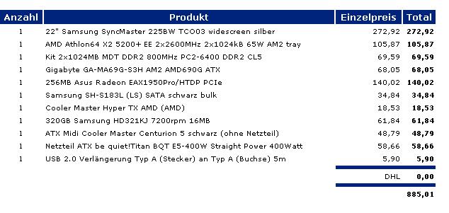 Überwiesen hab ich direkt auch schon per Onlinebanking und nu heists abwarten wie lange die gute Firma brauch um mir meine Hardware hierher zu liefern. Ich bin auf jeden Fall schonmal tierisch gespannt.