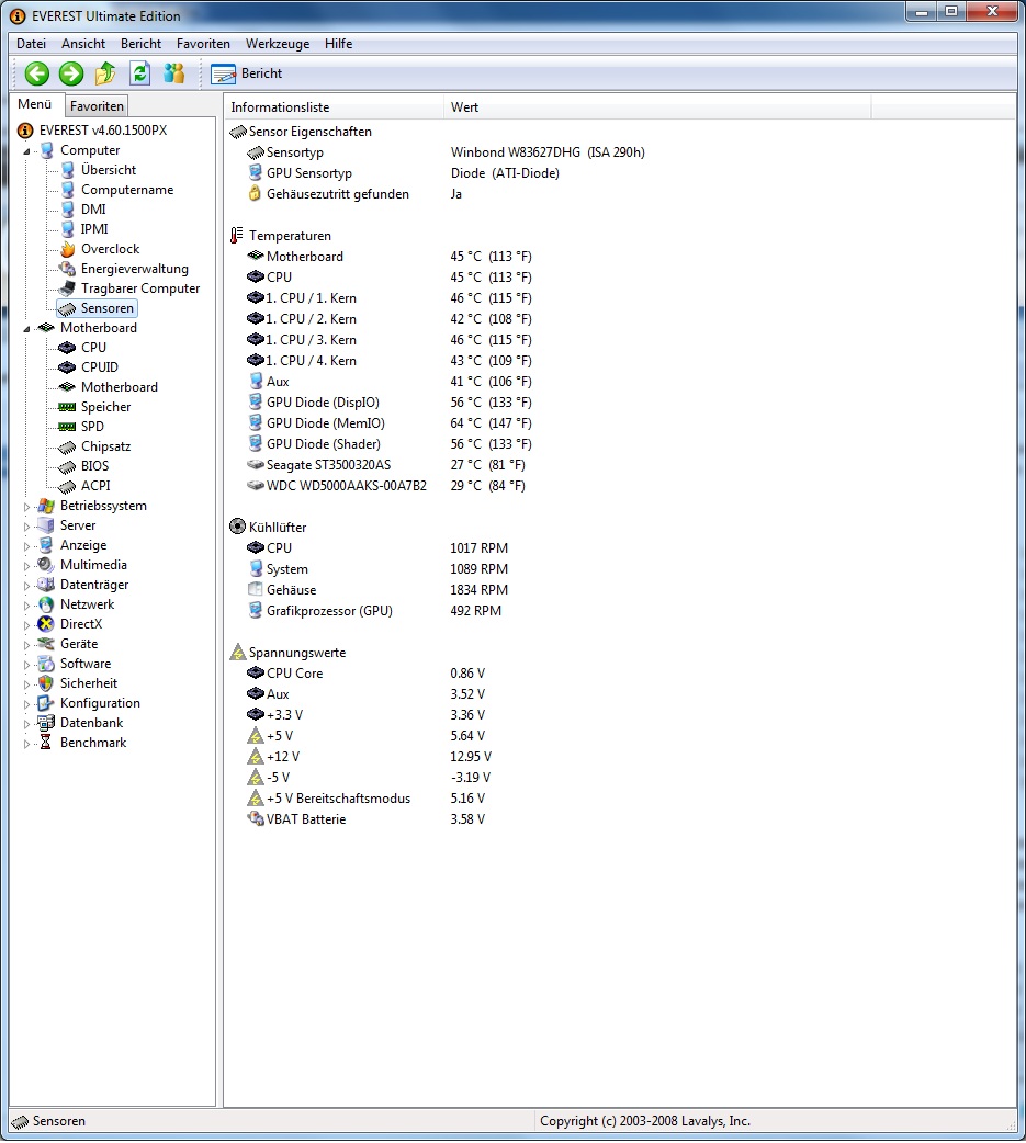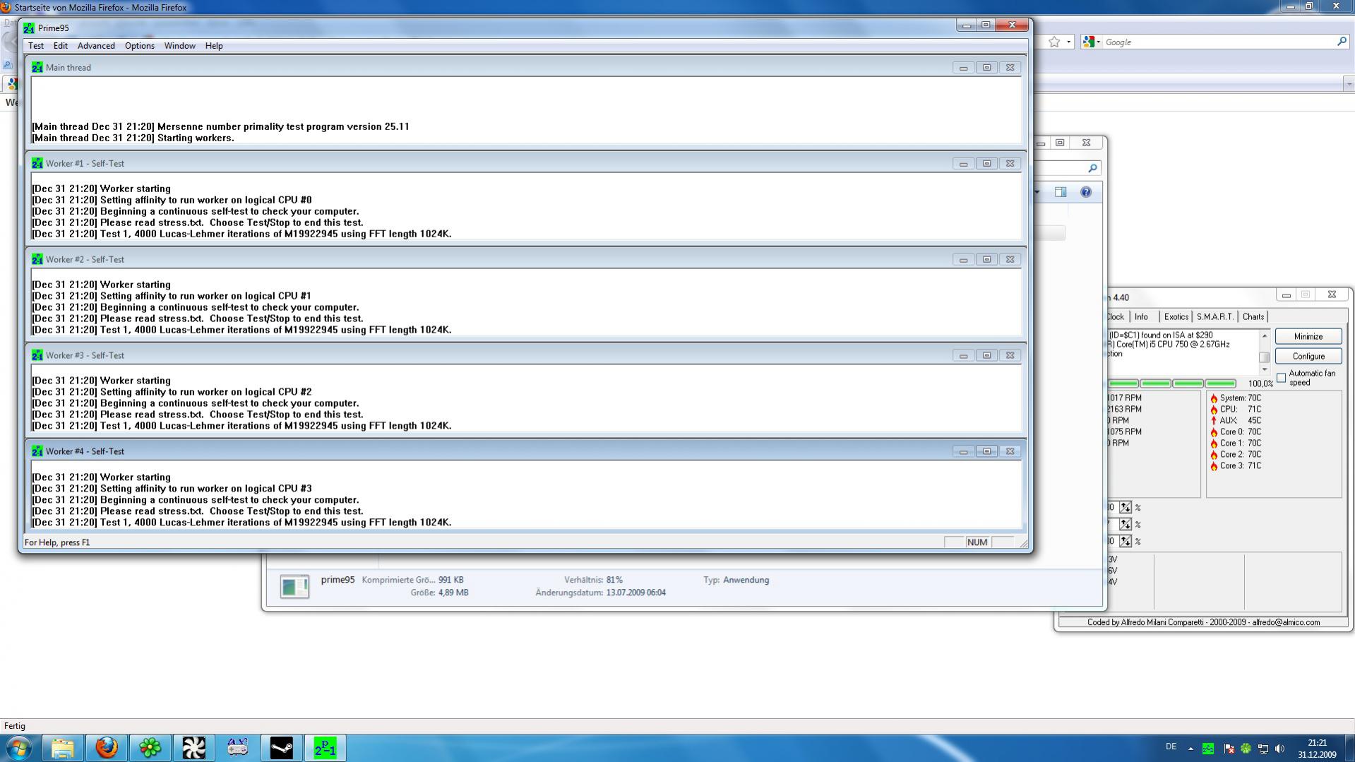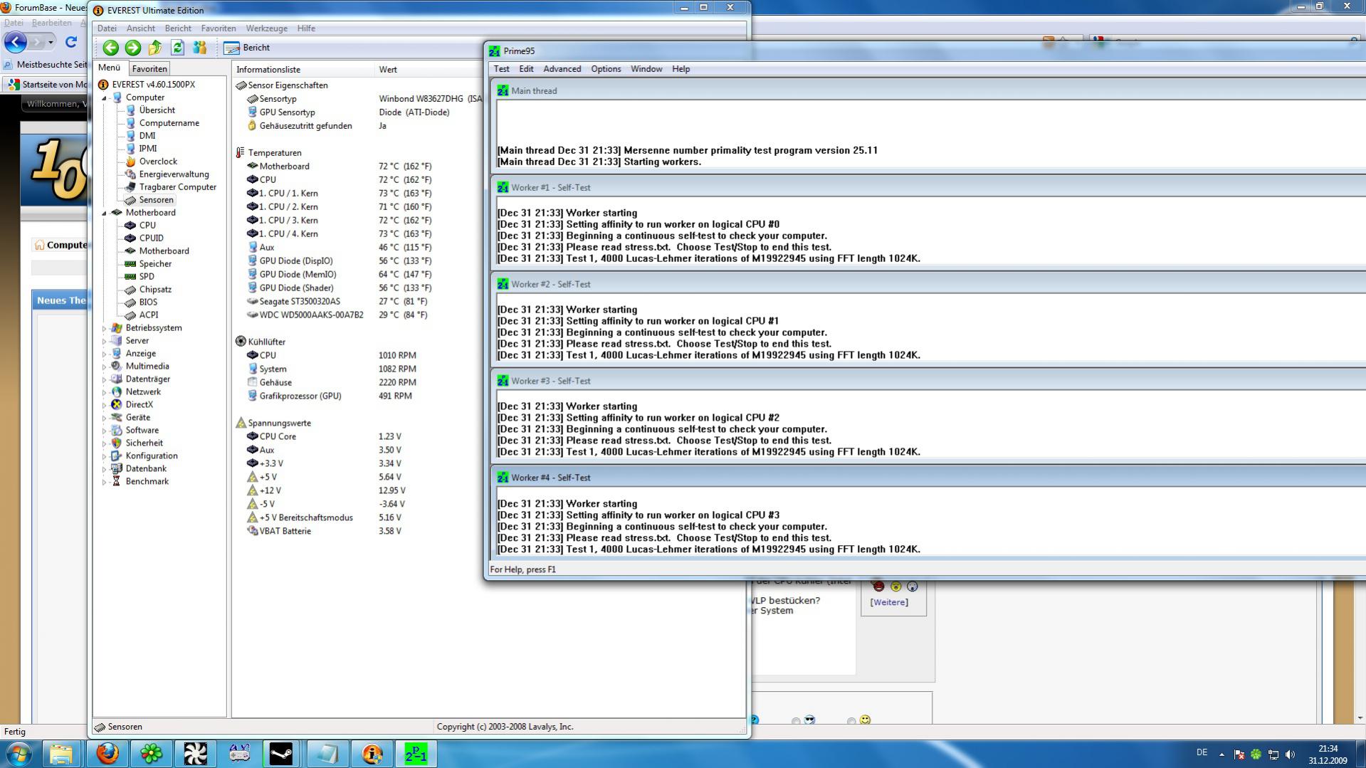 Hier ein Screen aus Everest(Daten) und Prime+Speedfan Temperatur.