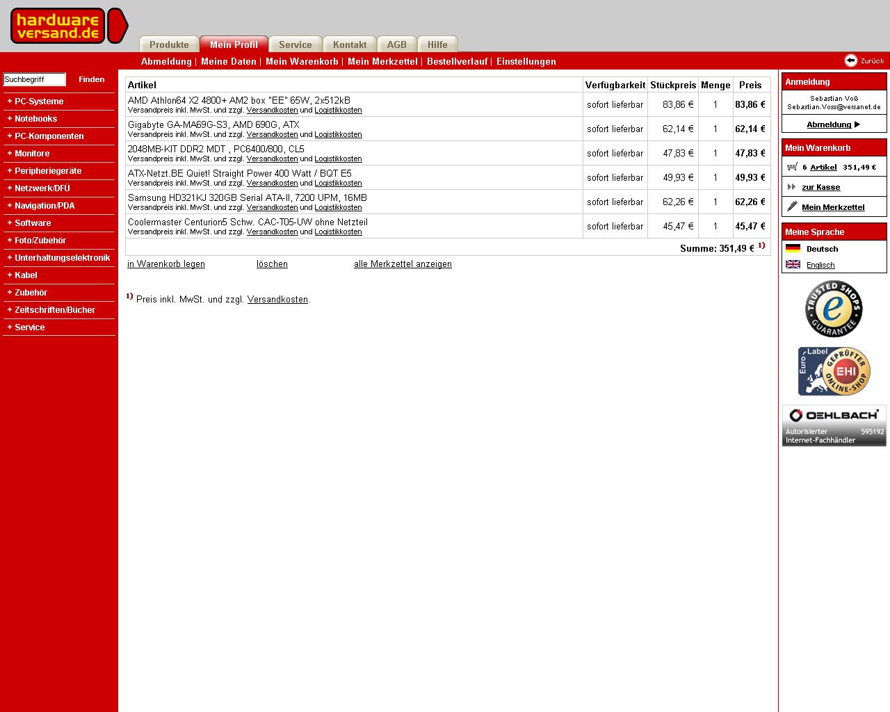 Ich habe mir die FAQ angeschaut und versucht die Komponenten soweit möglich alle bei Hardwareversand.de zu bekommen. Preise waren auch alle vollkommen okay.