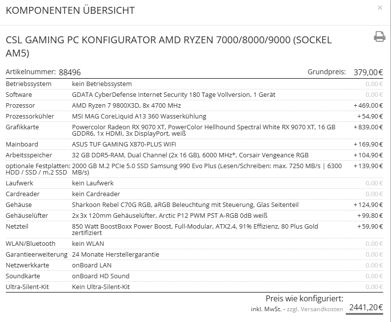 Falls der Grund für eine Wasserkühlung nicht ganz stark optischer Natur ist, würde ich immer eine Luftkühlung vorziehen.