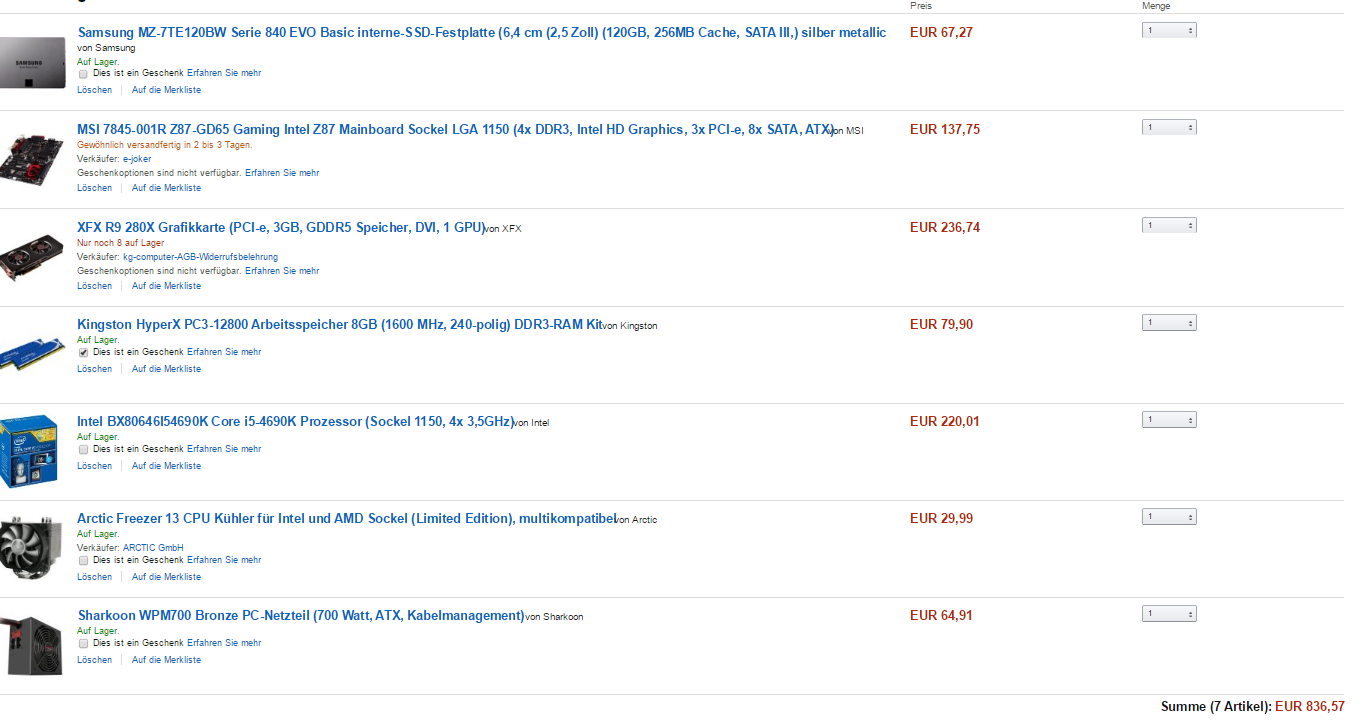 -Lässt sich ne Wasserkühlung mit preiswert einbringen (steht GANZ hinten an. Ich weis das Wasserkühlung sehr teuer sind. Bin mir auch sicher das das nicht günstig machbar ist. Bleiben wir erstmal bei der wichtigen Hardware. Wasserkühlung steht hinten an und kann auch später nachgerüstet werden. FALLS aber wer ZUFÄLLIG was anderes weiß darf es gerne mit einbringen)