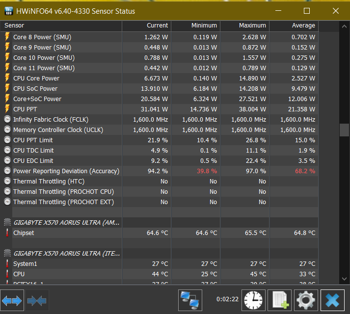 Die CPU Temperatur und Last scheint keine Rolle zu Spielen. CPU Temp liegt im Idle um die 40C, unter Last erreiche ich Spikes bis 85C.