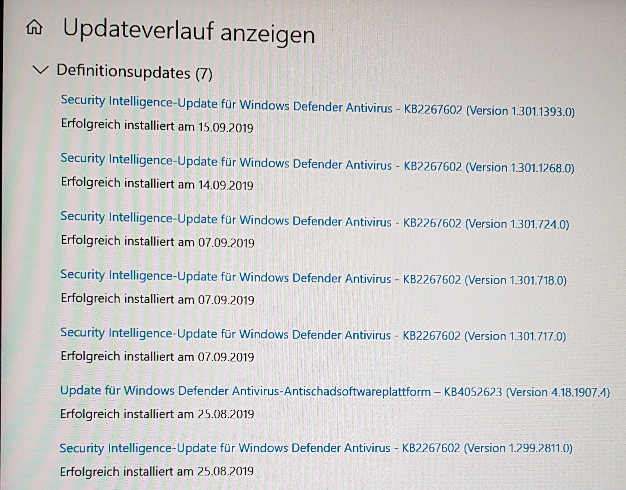 Nach dem Inplace Update fängst du doch eh wieder mit 0 an.@Terrier: Doch, natürlich kenne ich die Windows-Updates, aber nach dem Installieren des Inplace-Updates (das über eine Stunde gedauert hat) war die Liste der installierten Updates komplett leer (mittlerweile sind 3 Updates installiert worden - aber keine von Windows Defender).