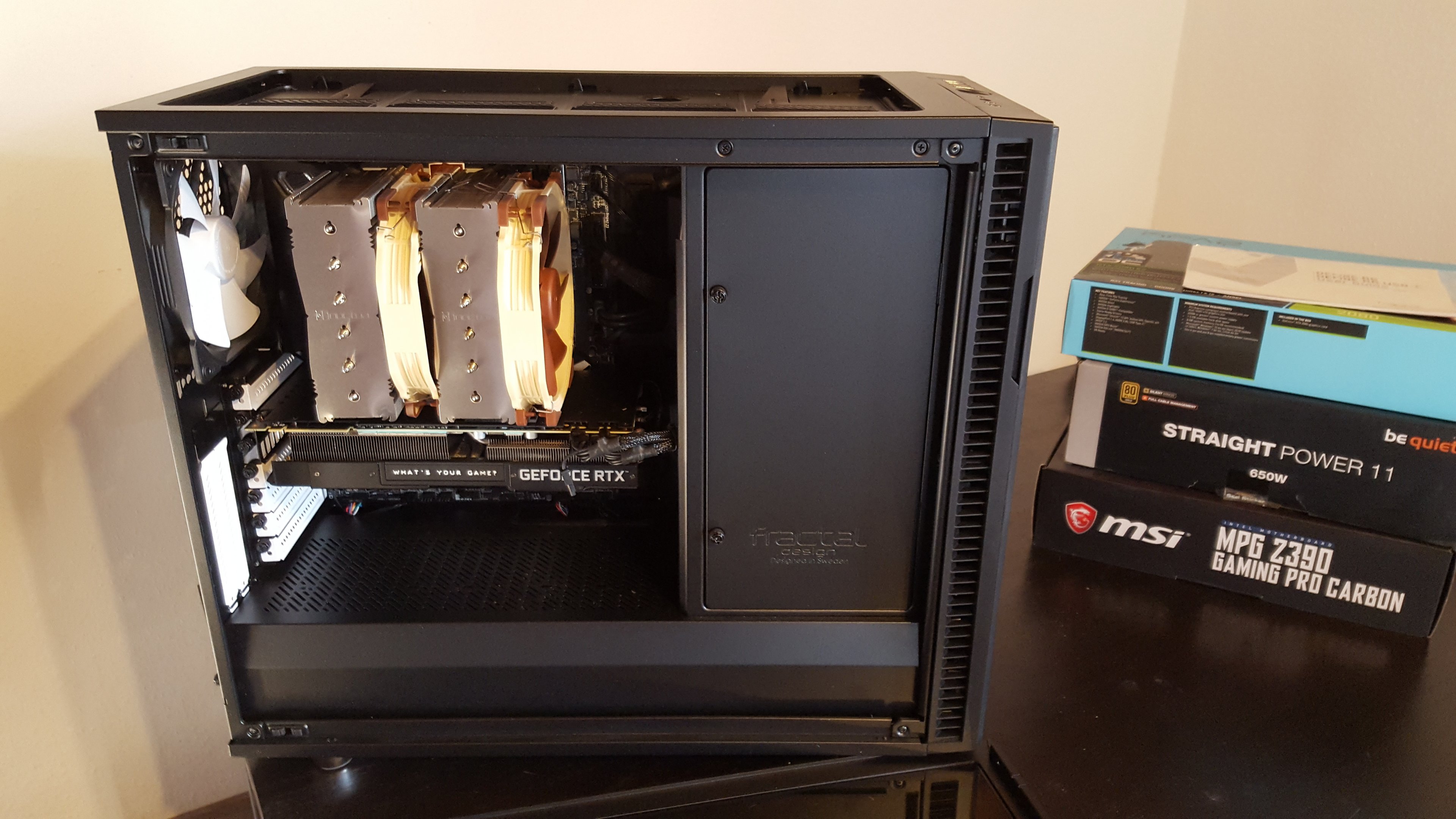 Ich glaube auch, dass die Lüfter gegenläufig montiert sind. Der rechte bläst nach links, und der linke bläst nach rechts, also falsch. Ist etwas schwer zu sehen. Die Pfeile auf dem Rahmen der Lüfter müssten das klar anzeigen.
