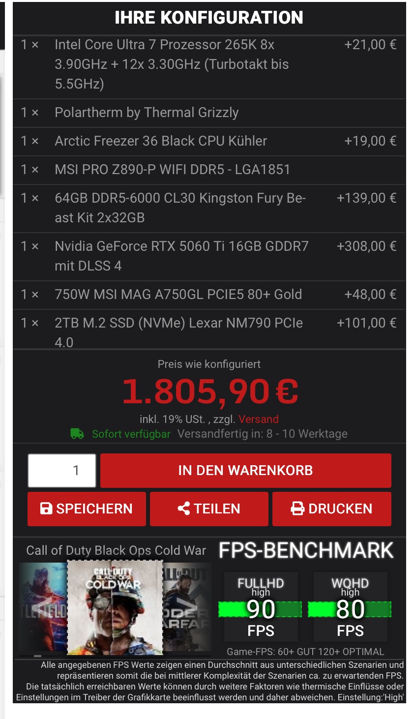 Ich habe mich mal ein wenig umgeschaut, die Auswahl an systemen mit 265K ist enorm beschränkt, ob nun Dubaro, Systemtreff oder Mad-Gaming. Könnte halt damit zu tun haben, dass Arrow Lake beim Gaming eben nicht sonderlich beliebt ist.